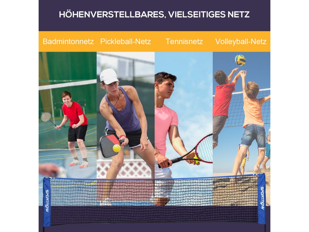 - Nastavitelná výška od 107 do 155 cm: Naše univerzální přenosná badmintonová síť je vhodná nejen na badminton, ale také na tenis a pickleball. Hrajte kdekoli - na trávě, na pláži, na zahradě nebo ve sportovní hale