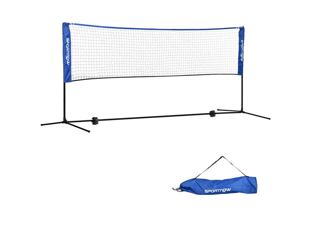 Síť na badminton SPORTNOW, výškově nastavitelná, skládací, s taškou na přenášení, 3,10 m, černá/modrá