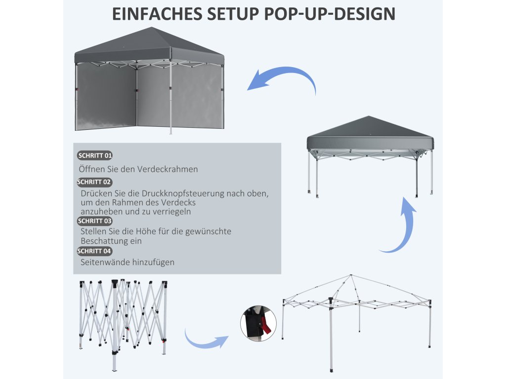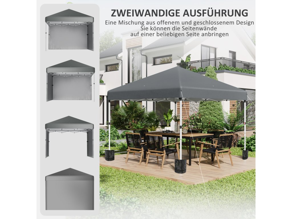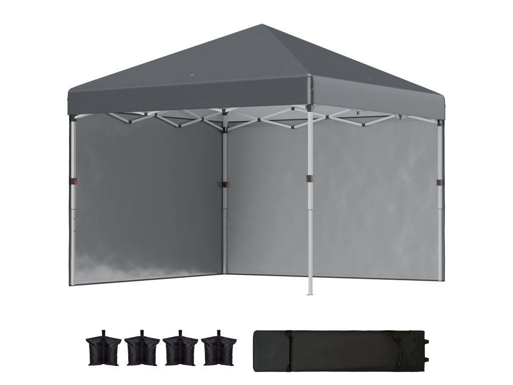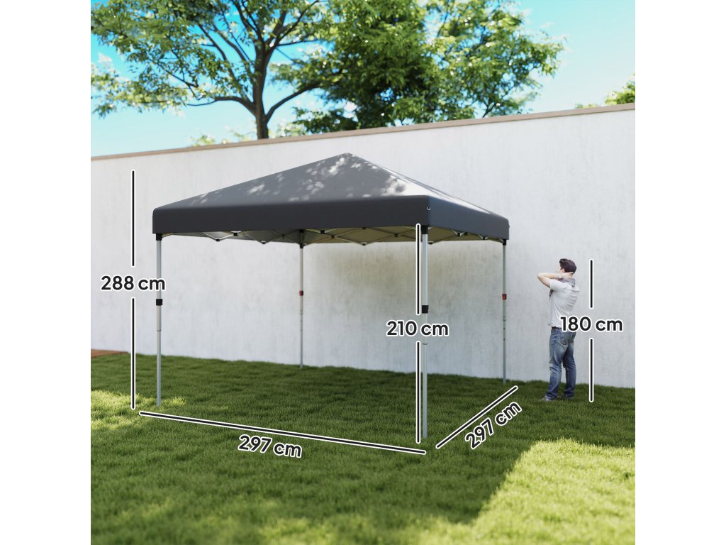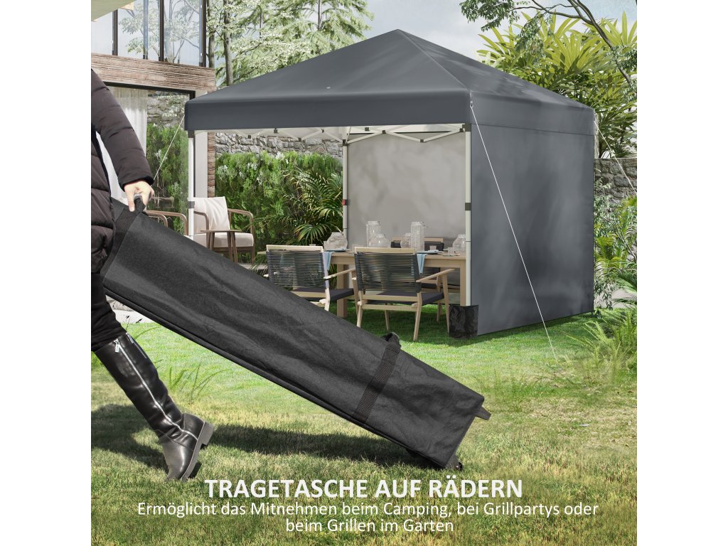 Skládací altán Outsunny, 2 boční stěny, výškově nastavitelný, s přepravní taškou, rám z nerezové oceli, 3x3 m, tmavě šedý