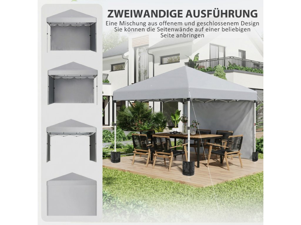 - ✔ Dvě odnímatelné stěny skládacího altánu slouží jako ochrana před větrem a deštěm a jako zástěna soukromí