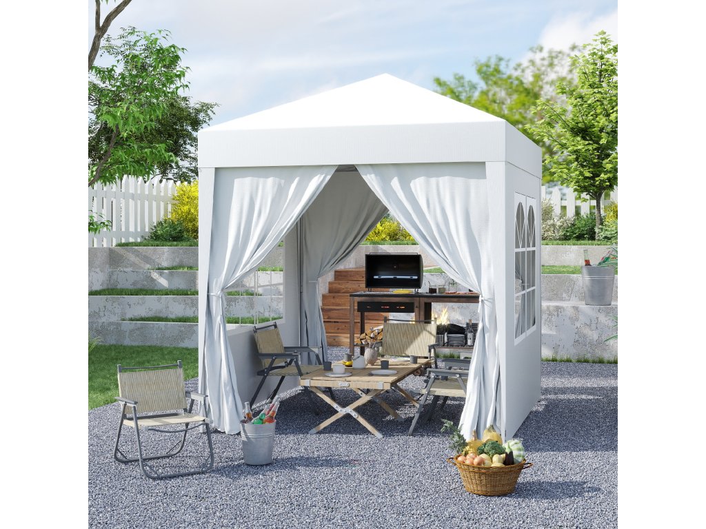 Skládací altán Outsunny, pivní stan, 4 odnímatelné boční stěny, 2 okna, kovový rám, 2 x 2 m, bílý