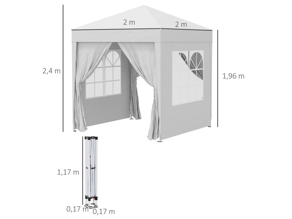 Tento kompaktní altán 2 x 2 m od společnosti Outsunny je skvělým a nekomplikovaným přístřeškem. Je ideální pro rodinné oslavy, svatby, pikniky, sportovní akce, staveniště a kempování. Celý pivní stan lze postavit nebo sundat za méně než minutu. Skládací altán má kvalitní ocelový rám s práškovým nástřikem, který se vyznačuje vysokou stabilitou a je vhodný i na zimu.