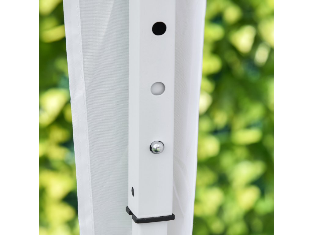 - Stabilita: Nerezový, práškově lakovaný ocelový rám s rovnými podpěrami, včetně napínacích lan a kolíků pro větší stabilitu skládacího altánu