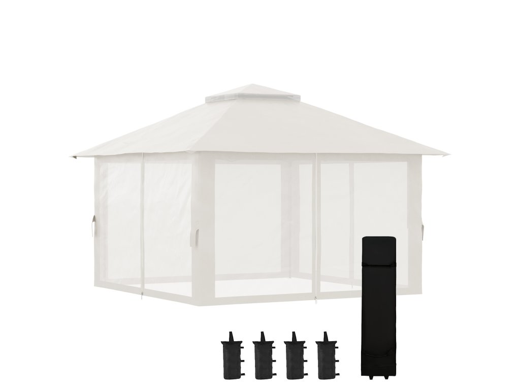Skládací altán Outsunny, výškově nastavitelný, 4 síťové stěny, větrací střecha, taška na přenášení, rychlé sestavení, 4 x 4 x 3 m, krémově bílá