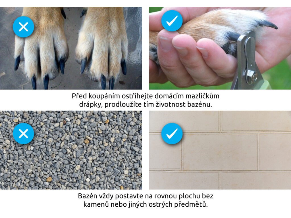 Bazén je vyroben na míru domácím mazlíčkům. Je vyroben z odolného plastu se zesílenými bočnicemi. Je velmi stabilní, má hladký povrch, snadno očistitelný a díky výpusti z něj lze jednoduše odstranit vodu. Bazén je dodáván v brašne, která usnadňuje jeho uskladnění.