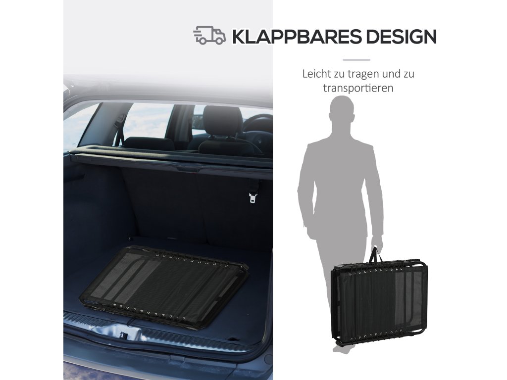- Skládací konstrukce: Přenosné lehátko lze postavit a složit během několika vteřin, což usnadňuje jeho přepravu a skladování, když se nepoužívá.