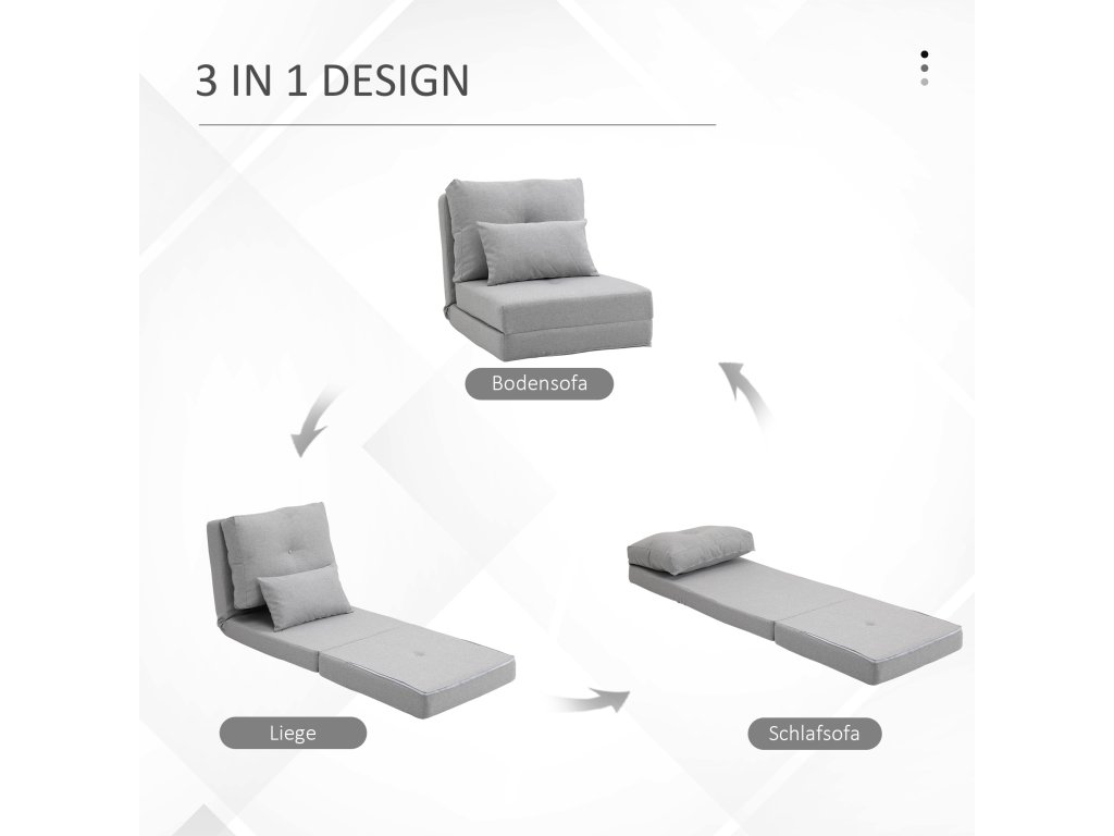 S touto podlahovou pohovkou od společnosti HOMCOM už nikdy nebude sezení na podlaze nepohodlné. Podlahové křeslo s trubkovým kovovým rámem nabízí bezpečnou oporu a je vybaveno snadno udržovatelným lněným potahem a silným polstrováním, takže můžete pohodlně sedět celé hodiny. Pohovku lze nastavit do 5 různých poloh a naklonit až o 180 stupňů. Díky tomu si můžete pohovku přizpůsobit podle svých představ a opěradlo lze v případě potřeby sklopit do podoby pohodlného lůžka.