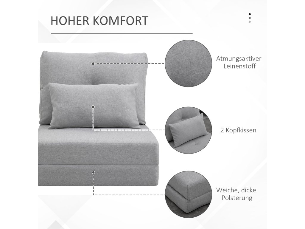 Skládací matrace na spaní HOMCOM, provedení 2 v 1, odnímatelný polštář, 60 x 80 x 56 cm, šedá barva