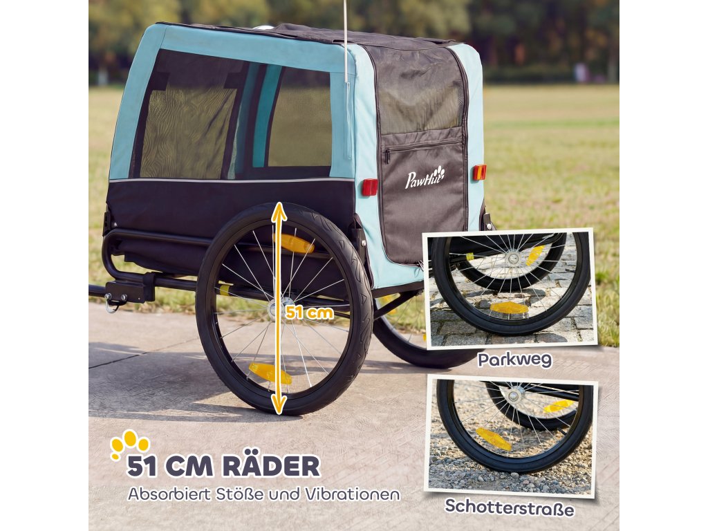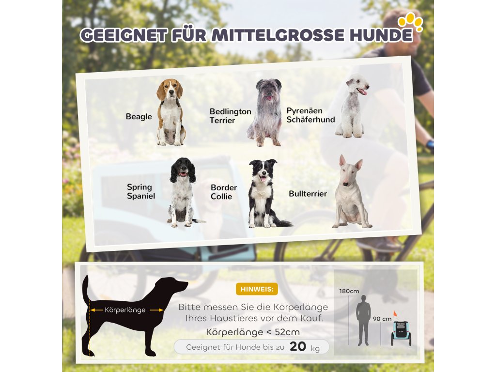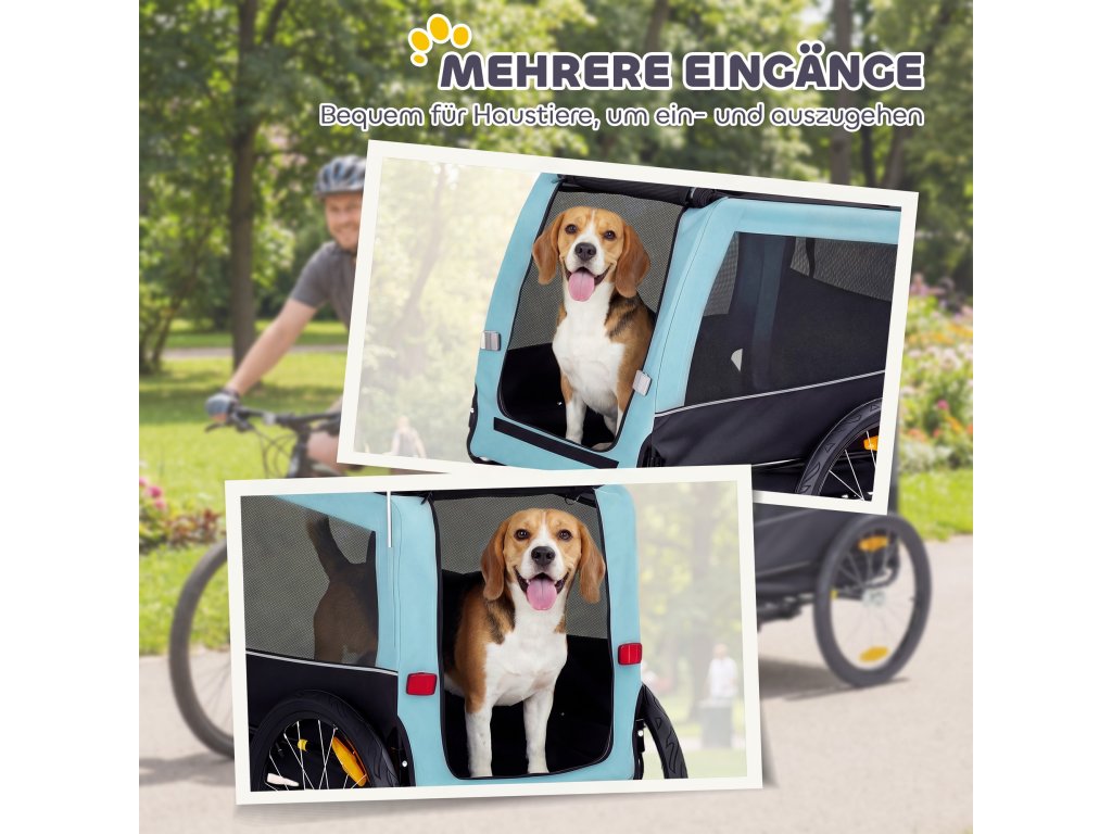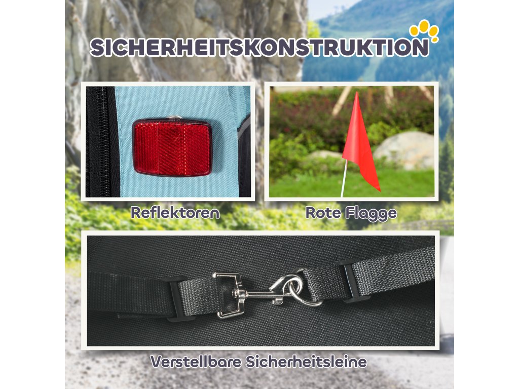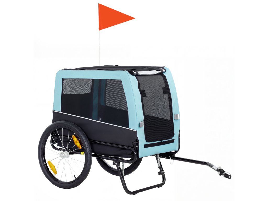 Skládací přívěs za kolo PawHut s bezpečnostními odrazkami a vodítkem, pro středně velké psy do 20 kg, 143 x 70 x 90 cm, světle modrá