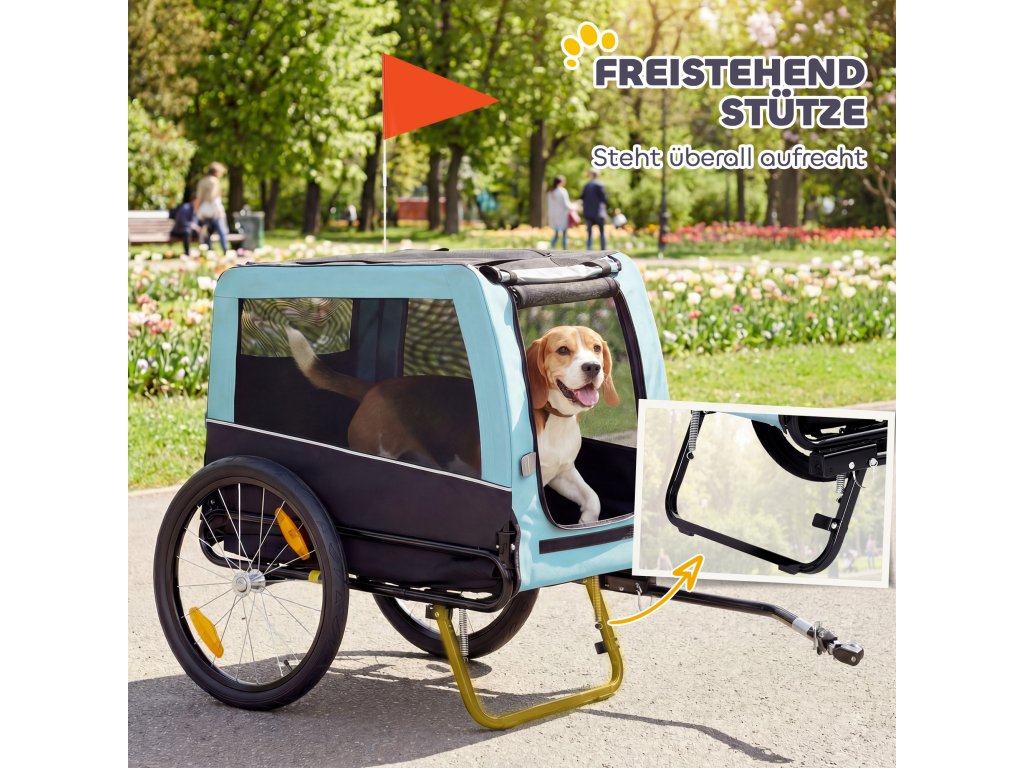 Samostatně stojící podpěrná noha: Podpěrná noha stabilizuje přívěs pro psí kolo bez jízdního kola, ideální pro bezpečné parkování, nakládání, přestávky nebo jako místo k odpočinku doma i na cestách.