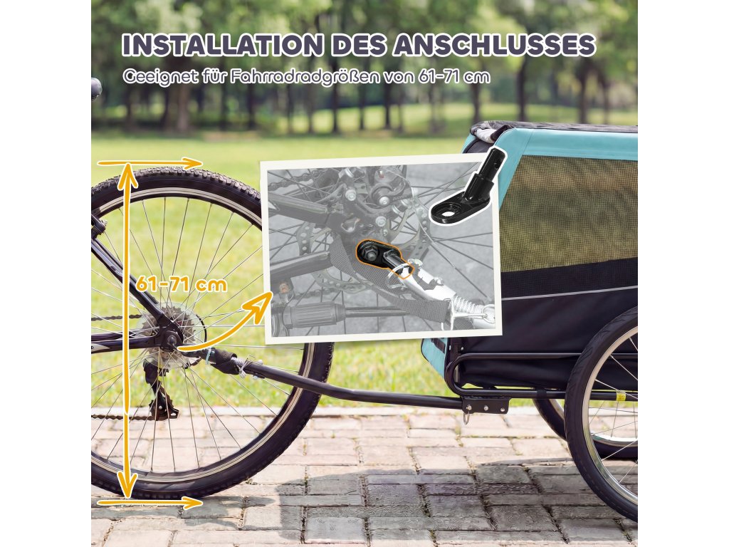 ✔ Snadno se připevňuje k většině jízdních kol se zadními koly o průměru 61-71 cm