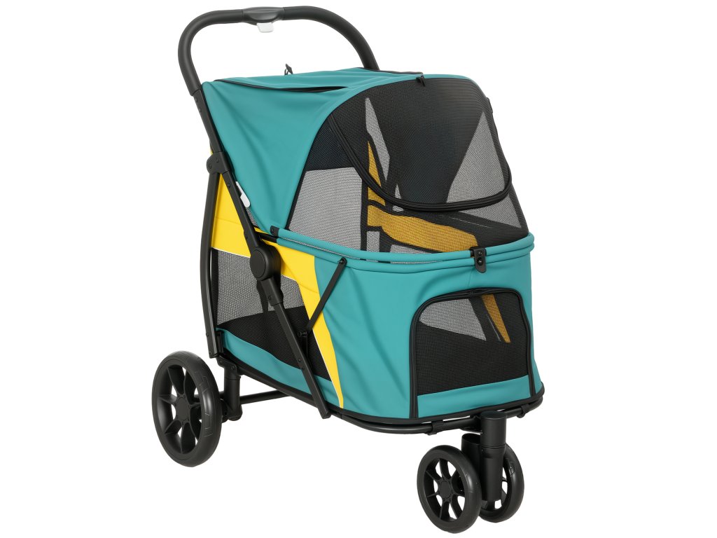 Skládací psí kočárek/kočárek PawHut pro psy do 20 kg s polštářem, síťovanými okénky, zadní kapsou, 92 x 63 x 95 cm, tmavě zelený
