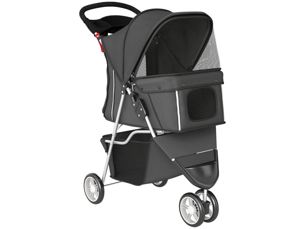 Skládací psí kočárek PawHut s nastavitelnou stříškou, úložným košem, pro malé psy do 10 kg, 77 x 44 x 102 cm, tmavě šedý