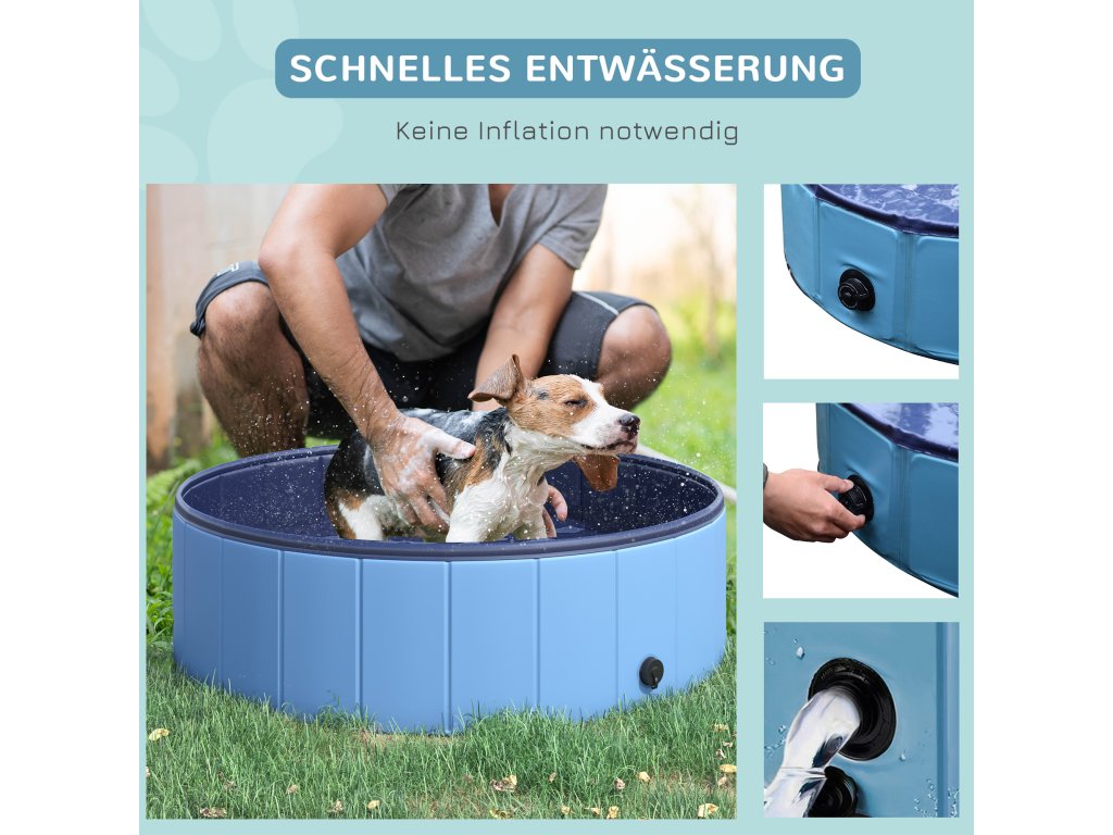 Ideální pro ochlazení v horkých dnech! Plavání v bazénu pro psy je zdravé a osvěžující. Lze jej použít k ochlazení vašich mazlíčků v horkých, slunečných dnech. Díky tomuto bazénu pro psy si váš chlupatý kamarád užije spoustu zábavy a radosti.