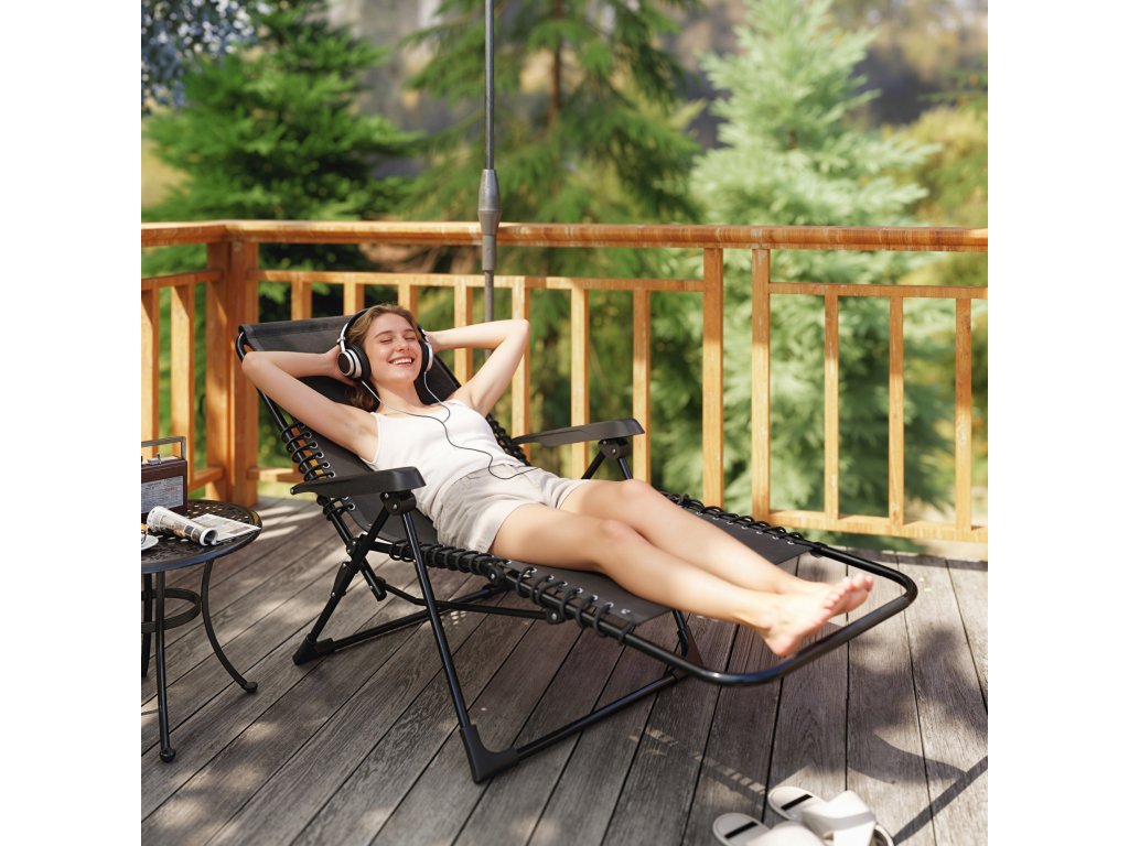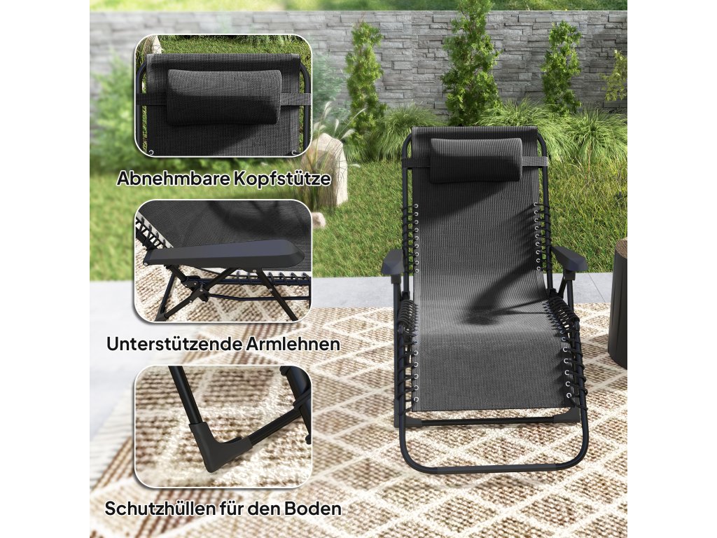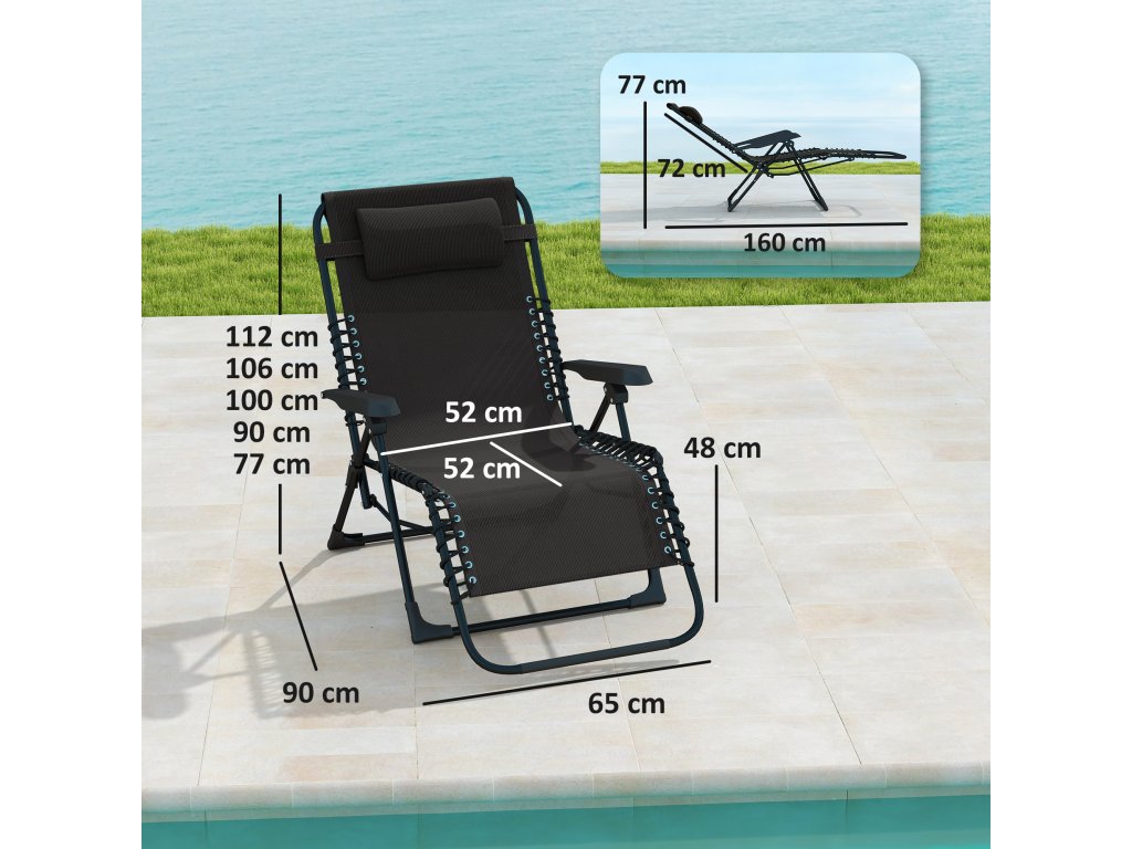 Skládací zahradní lehátko Outsunny s polštářem pod hlavu, 5 poloh nastavitelného opěradla, nosnost až 120 kg Černá barva
