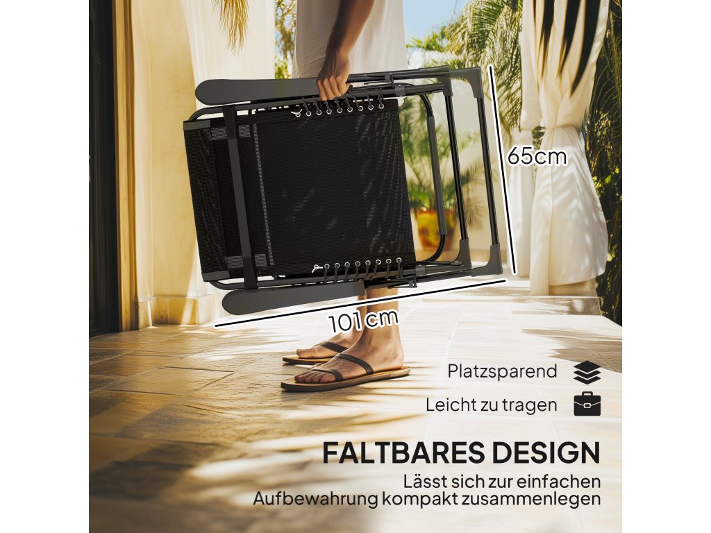 Zažijte maximální pohodlí se zahradním lehátkem Outsunny odolným proti povětrnostním vlivům, které nabízí pět možností nastavení od vzpřímené polohy až po úplně plochou - ideální pro opalování. Toto kempingové lehátko je vyrobeno z rychleschnoucího materiálu Texteline a slibuje dlouhou životnost. Tato skládací lehátka, vybavená měkkým odnímatelným polštářem, jsou ideální pro odpočinkové dny na zahradě.