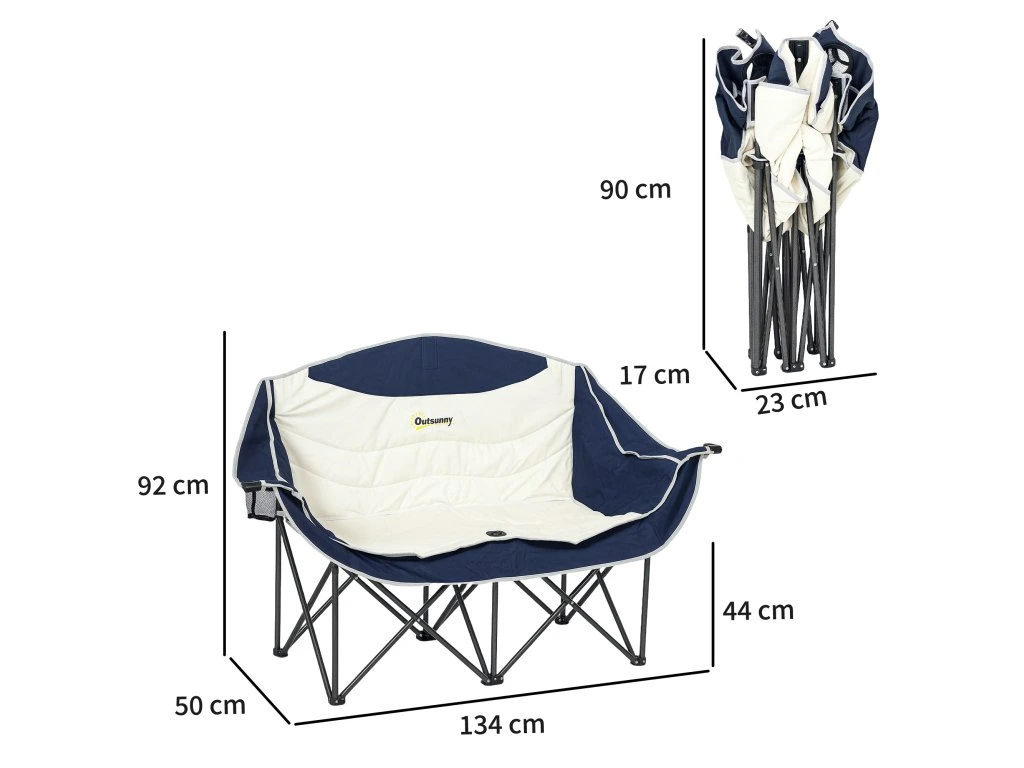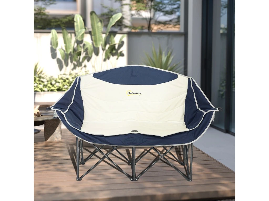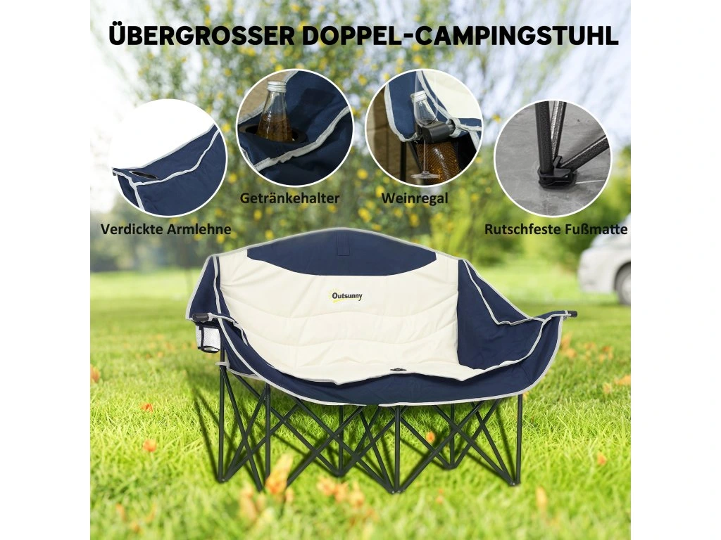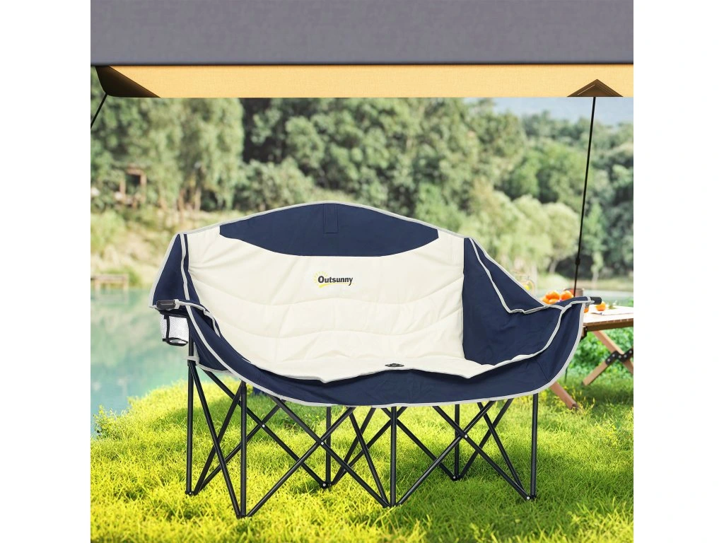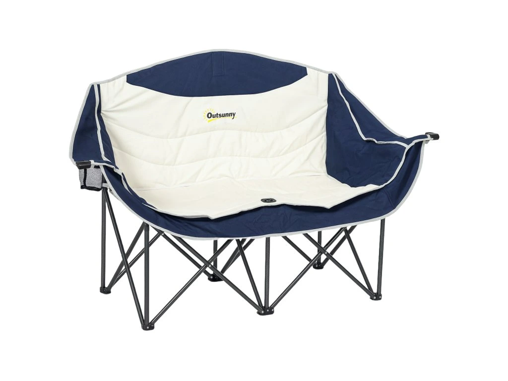 Skládací židle Outsunny, skládací dvoumístná kempingová židle s držákem na nápoje a přepravní taškou, nosnost až 250 kg, modrá