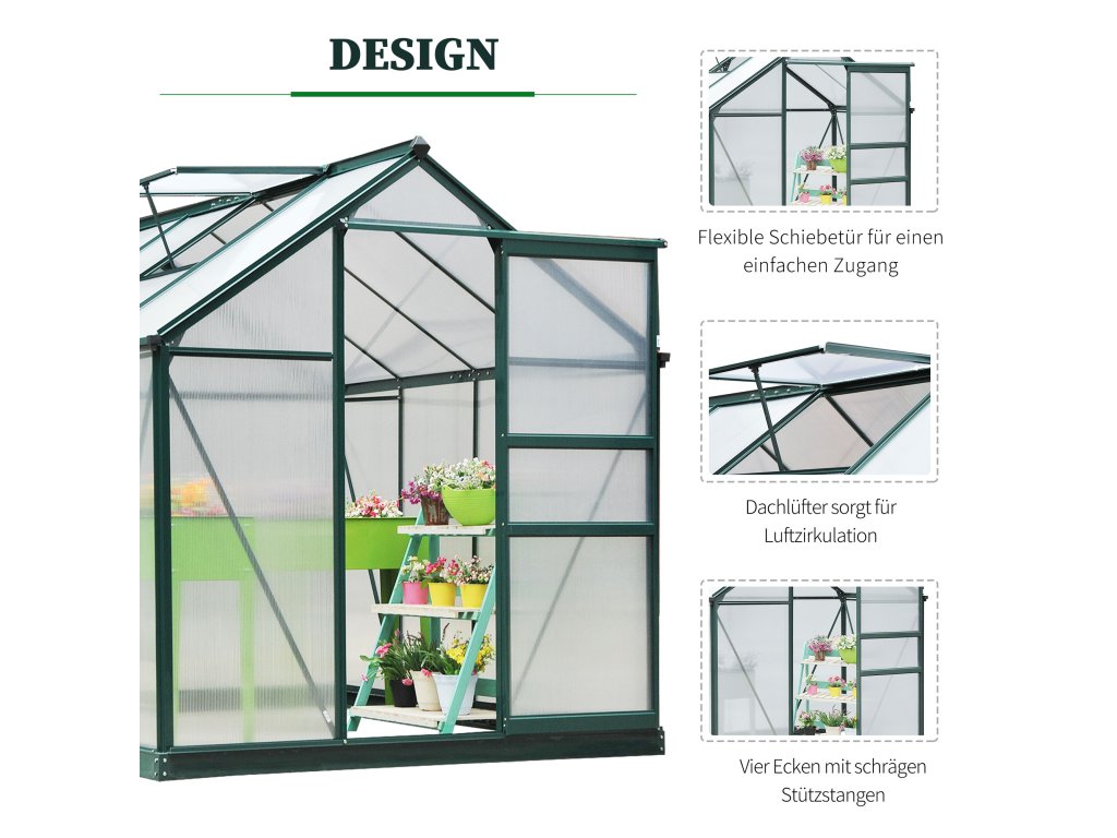 ✔ Praktické posuvné dveře umožňují snadný vstup do skleníku
