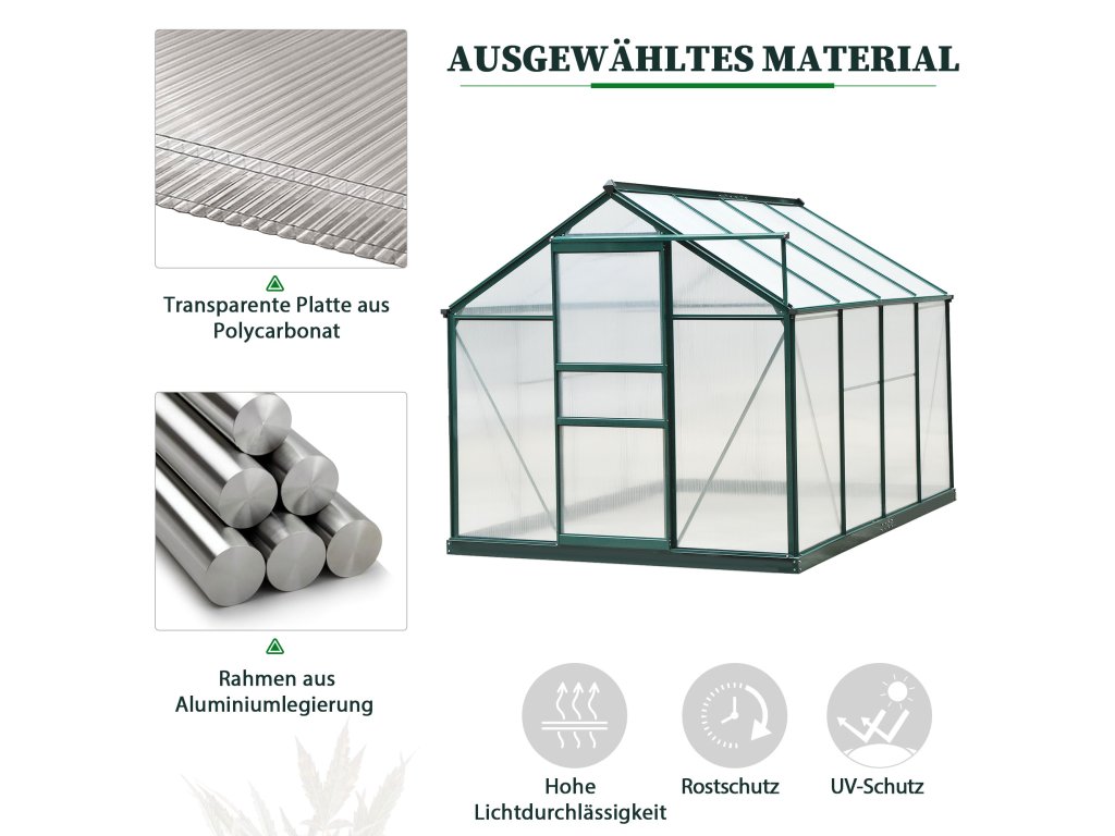 Odolná konstrukce: Stavebnice skleníku je vyrobena z práškově lakované hliníkové slitiny s pozinkovanou základnou, díky čemuž je celá konstrukce stabilní a stabilní.