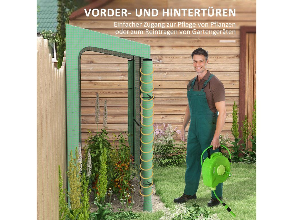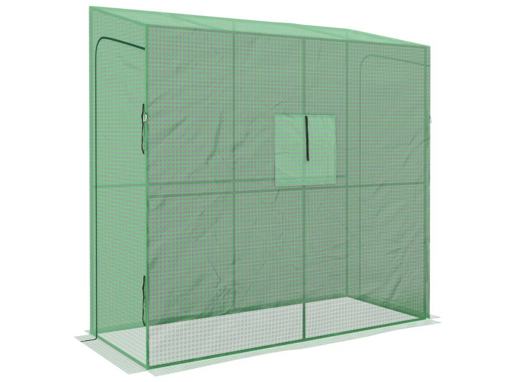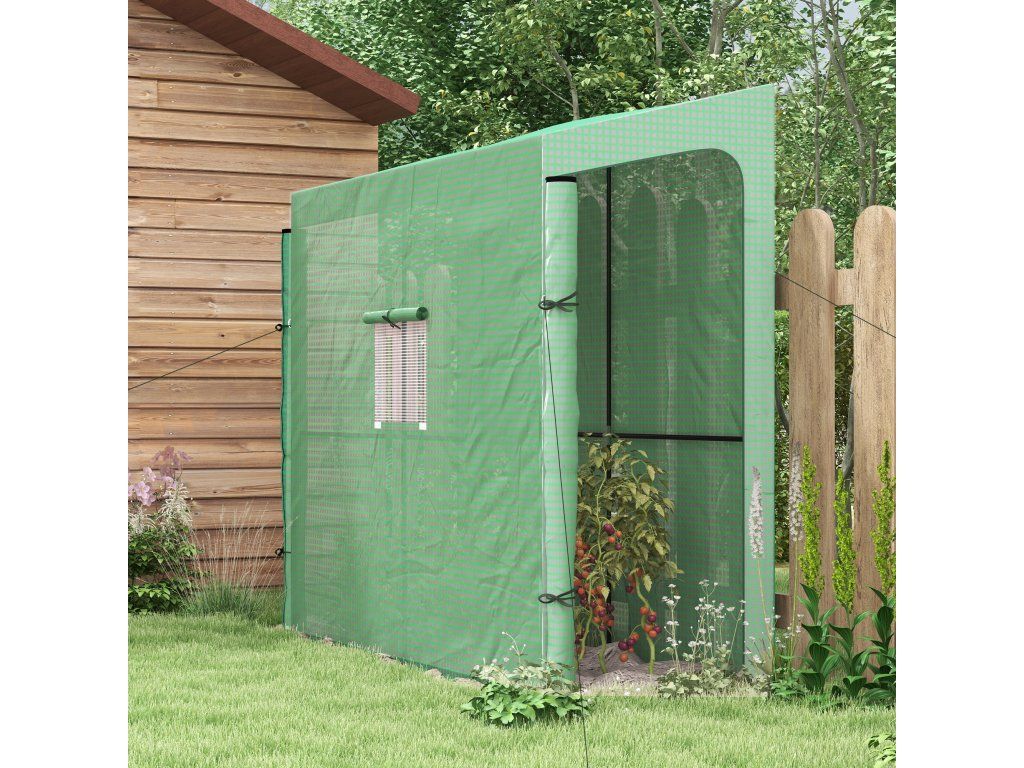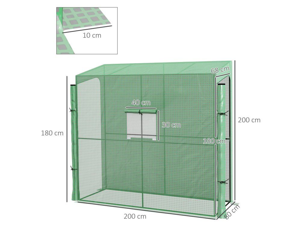 Skleník Outsunny Skleník s rolovacími dveřmi, odolný proti povětrnostním vlivům, 200 cm x 80 cm x 200 cm, zelený