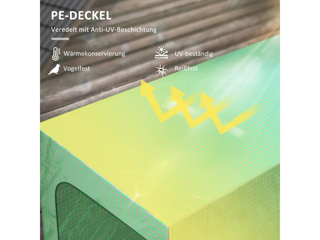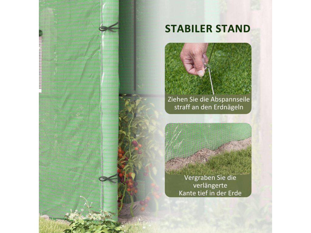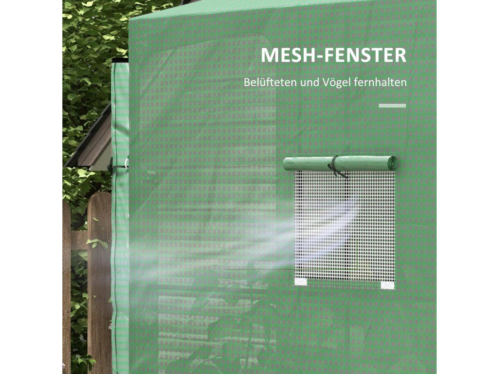 Už se nemusíte bát, že vaše pečlivě ošetřované rostliny a květiny zmrznou! Procházkový skleník od společnosti Outsunny nabízí prostorné a praktické řešení pro všechny zahrádkáře. Poskytuje dostatečný vertikální prostor pro popínavé rostliny, jako jsou okurky a rajčata. PE kryt odolný proti UV záření s rolovacími dveřmi a oknem ze síťoviny vytváří optimální teplotní a vlhkostní klima pro růst rostlin.