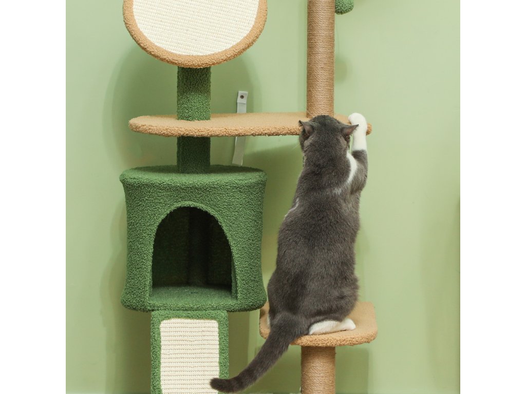 - Design inspirovaný přírodou: Tento krásný kočičí strom s umělými listy a designem inspirovaným přírodou nejen doplní váš interiér, ale také účinně ochrání váš nábytek před poškrábáním