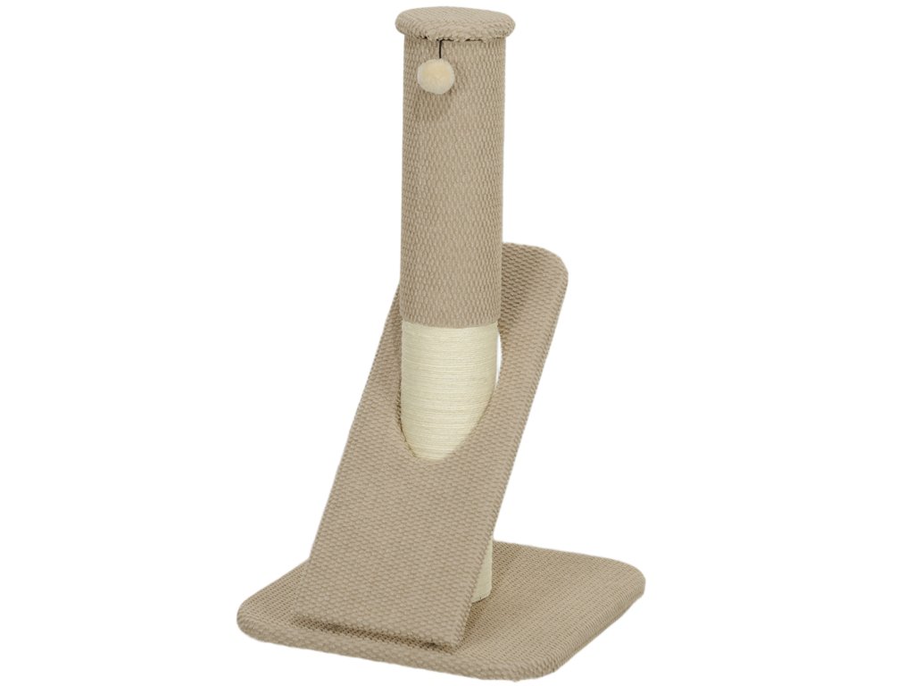 - Interaktivní a stylové: Toto škrabadlo je vybaveno hracím míčkem a v decentním světle hnědém a krémově bílém barevném provedení, takže harmonicky zapadne do vašeho domova