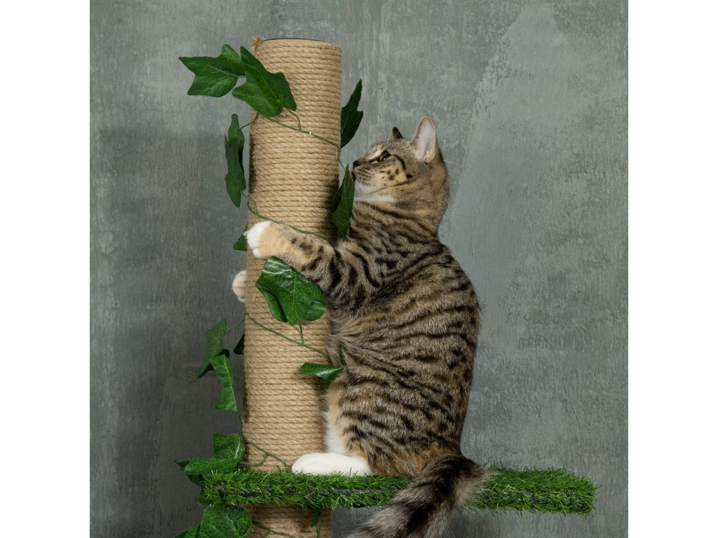 - Jutové škrabadlo: Tento velký kočičí strom umožňuje kočkám bezpečně používat drápky, což je šetrné k vašemu nábytku.
