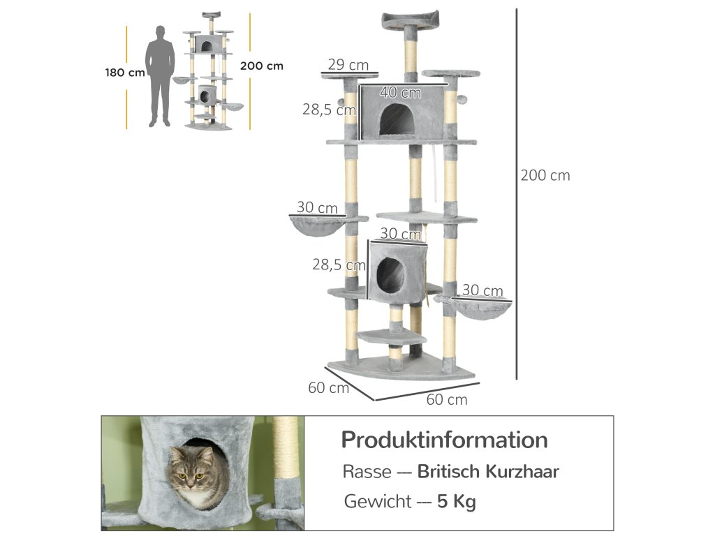 - Údaje o výrobku: Kočka je vhodná pro všechny kočky, které mají rádi kočky, které mají rádi kočky: Celkové rozměry: 60L x 60W x 200H cm. Max. Nosnost: 10 kg.