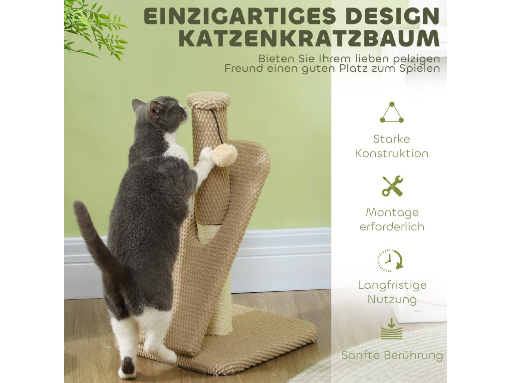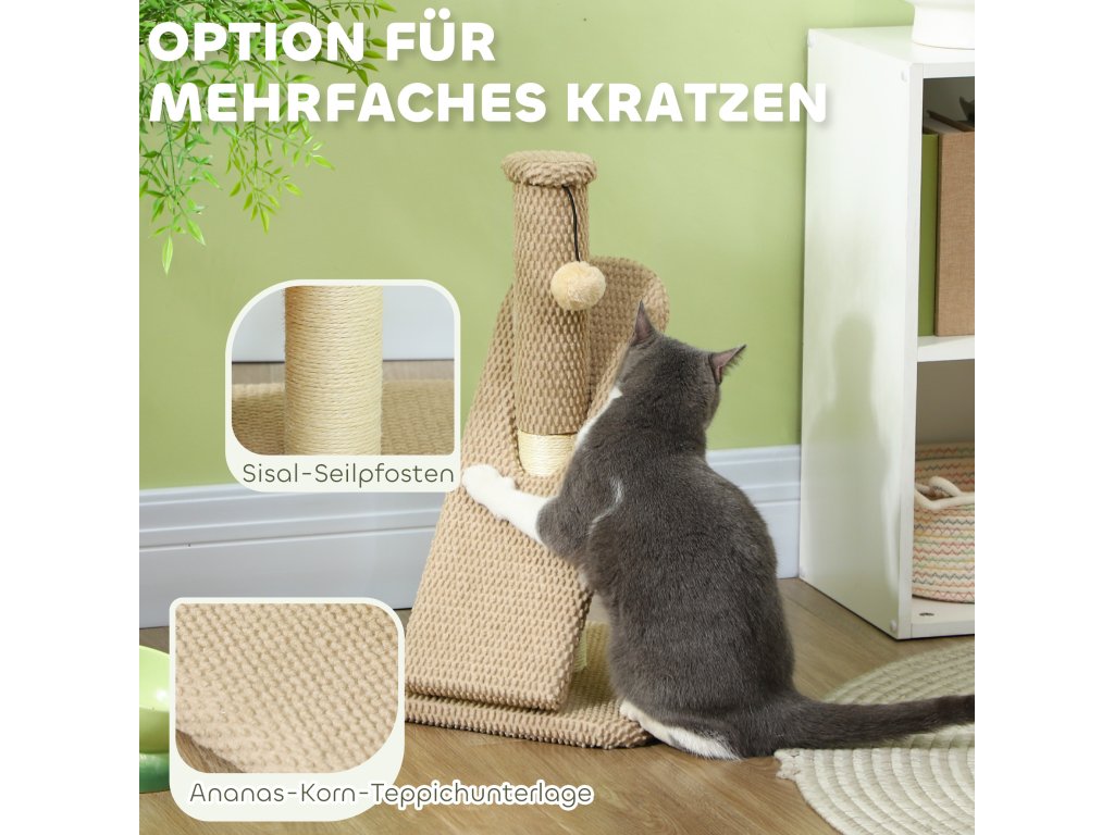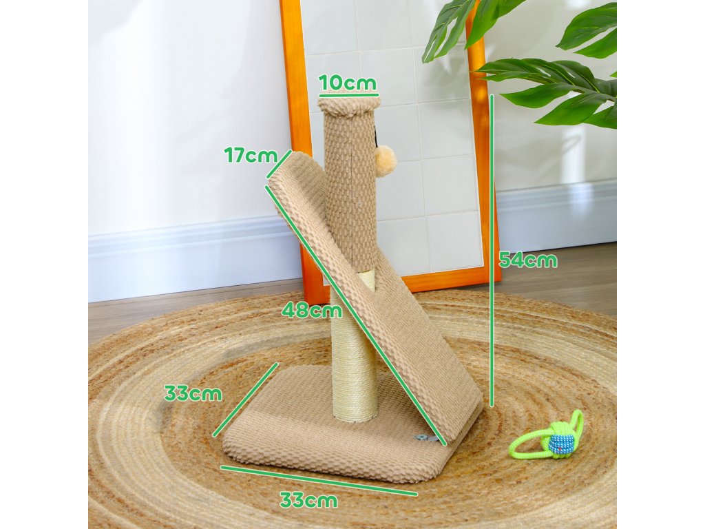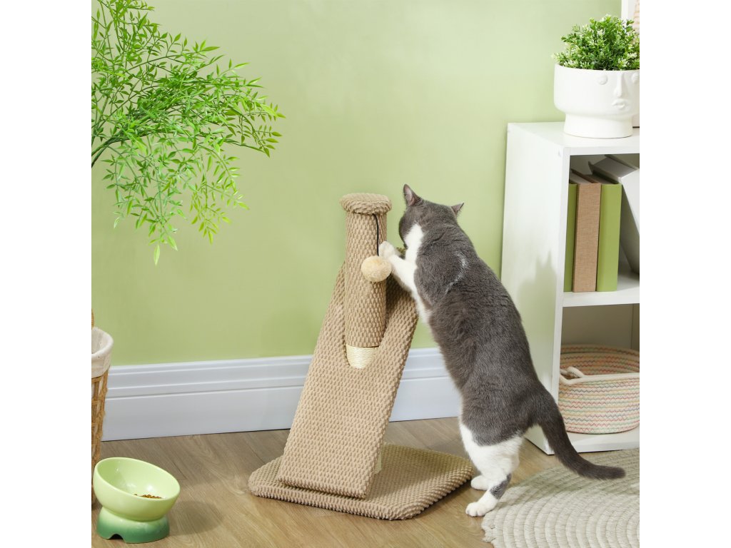 Škrabadlo PawHut se škrabací deskou, míčkem na hraní, struktura s ostny/sisal, 54 cm, světle hnědá barva