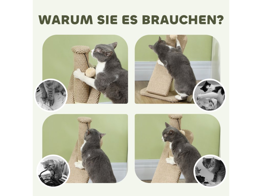 - ✔ Součástí je hrací míček, který kočky zaměstná a zabaví u škrabadla
