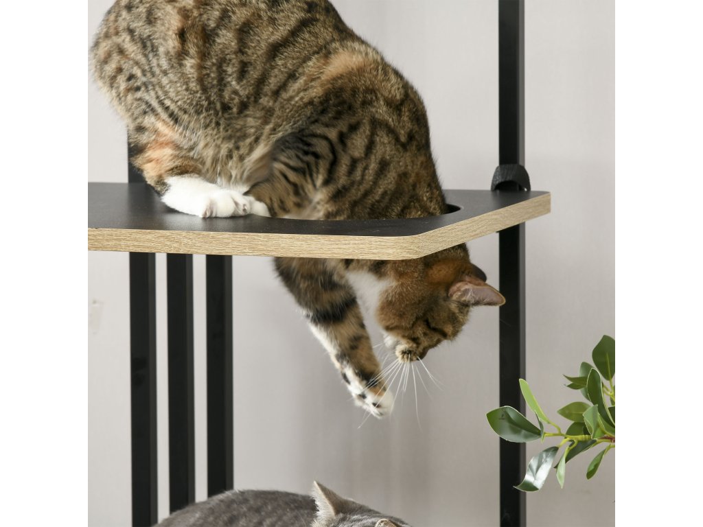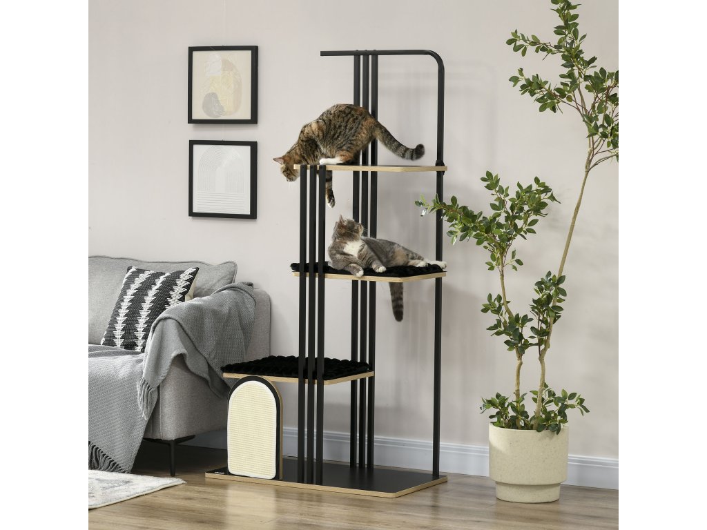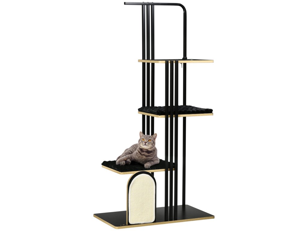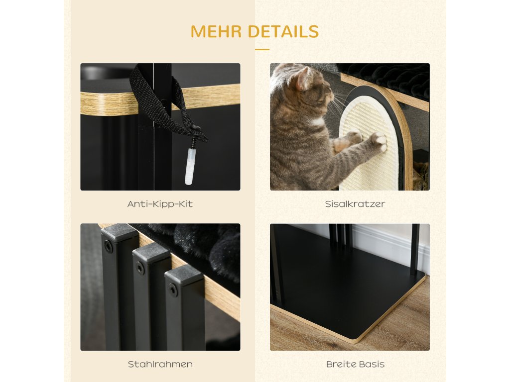 Stabilní a bezpečný: Konstrukce z dřevotřísky a oceli, široká základní deska a ochrana proti převrácení činí tento 4úrovňový škrabadlo pro kočky stabilním a bezpečným.
