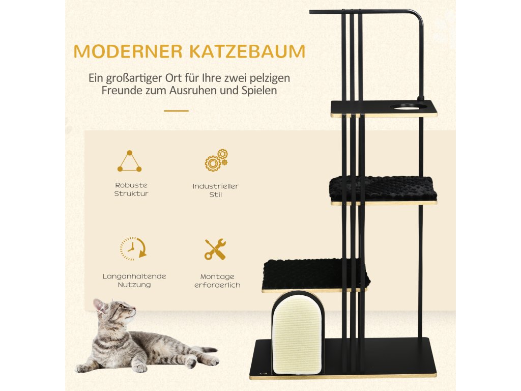 Škrabadlo pro kočky, 170 cm velké s polštářem, škrabadlo, 3 plošiny, ocelový kočičí nábytek v černé barvě