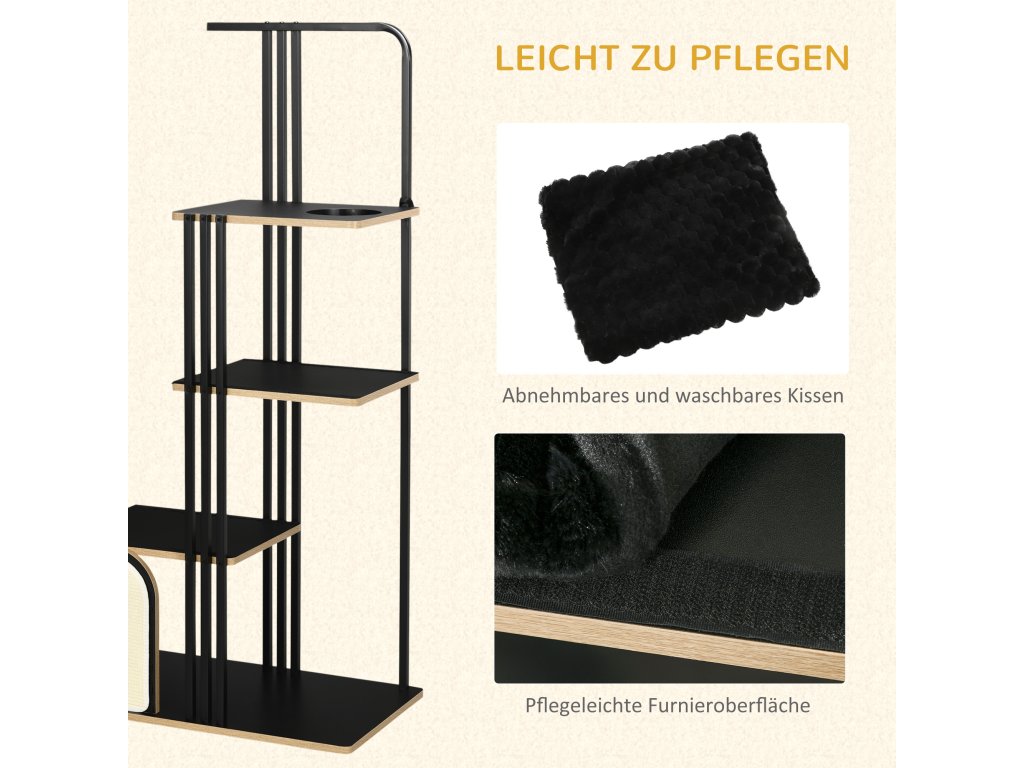 Polštáře: Dvě plošiny jsou vybaveny měkkými polštáři pro pohodlný odpočinek koček. Polštáře a škrabadlo jsou odnímatelné a pratelné.