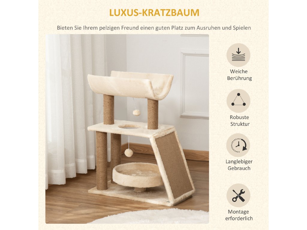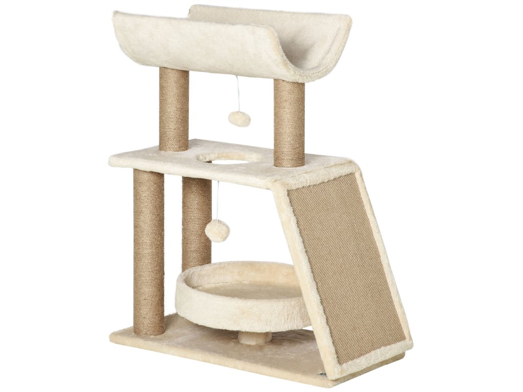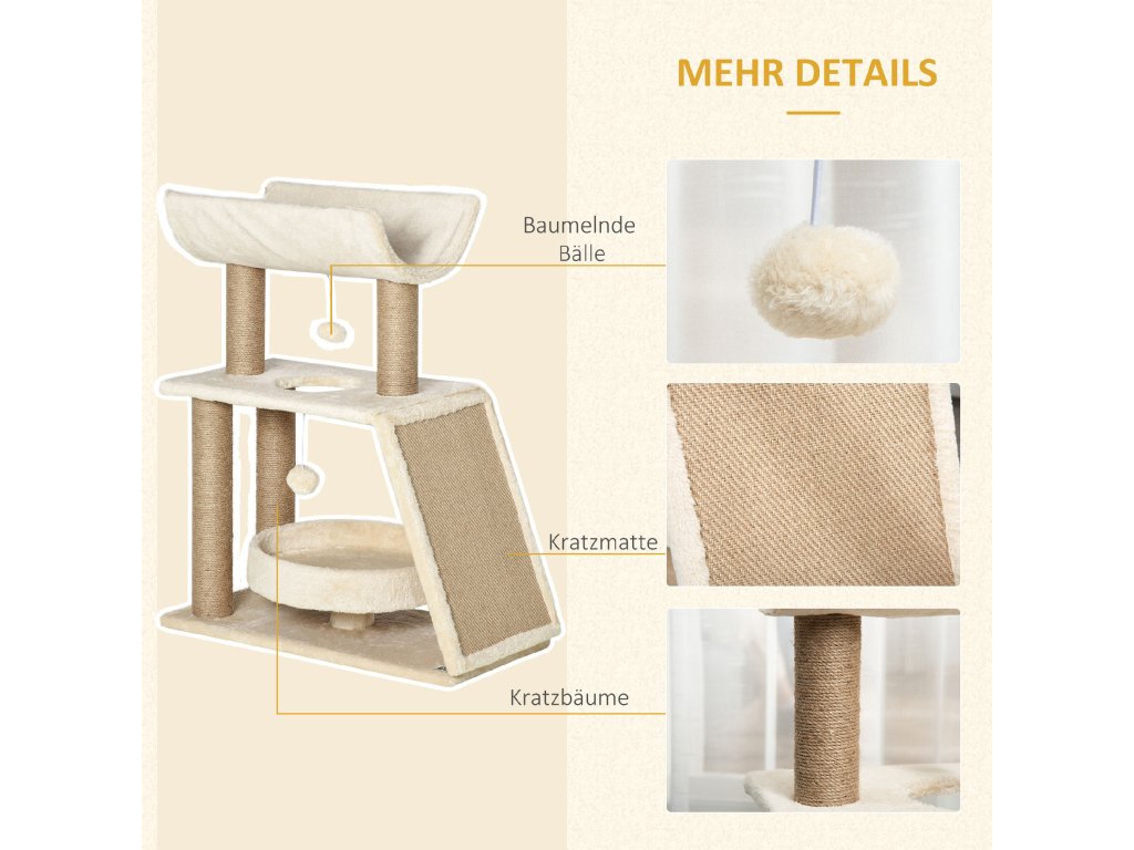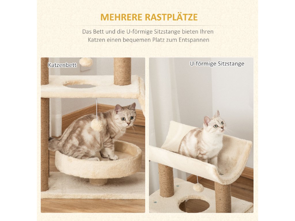 Perfektní místo pro hraní, odpočinek, lezení a škrábání: škrabadlo PawHut splní všechna přání vaší kočky. Sisalové kufry a jutový polštář nabízejí ideální možnost poškrábání, aby se zabránilo tomu, že by se nábytek musel používat k poškrábání. Hrací míčky škrabadla pro kočky poskytují zábavu, zatímco lehací plocha a postel potažená měkkým plyšem poskytují útulná místa k odpočinku.