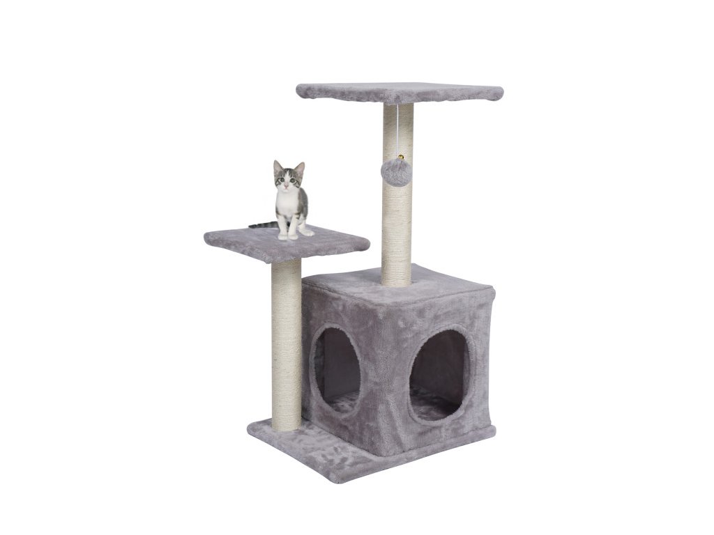 Škrábe vám Váš chlupatý mazlíček sedačku a šplhá po záclonách? S naším vymazleným škrabadlem už nebude! Dopřejte své kočičce místo, kde může beztrestně pečovat o své drápky . Modesty Plus je vylepšeným modelem Modesty - k plyšovému domečku a sisalovému sloupku s plošinou přidává o jeden sisalový sloupek a plyšovou plošinu navíc. Dále také disponuje zavěšenou bambulkou na hraní.