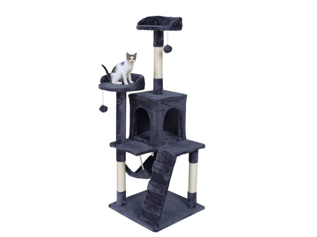 Škrábe vám Váš chlupatý mazlíček sedačku a šplhá po záclonách? S naším vymazleným škrabadlem už nebude! Dopřejte své kočičce místo, kde může beztrestně pečovat o své drápky, šplhat do výšek, lenošit v plyšovém domečku, nebo si užít šlofíka po obědě v houpací síti. Tenhle víceúrovňový kočičí strom nabízí Vaší kočce zkrátka všechno co potřebuje.