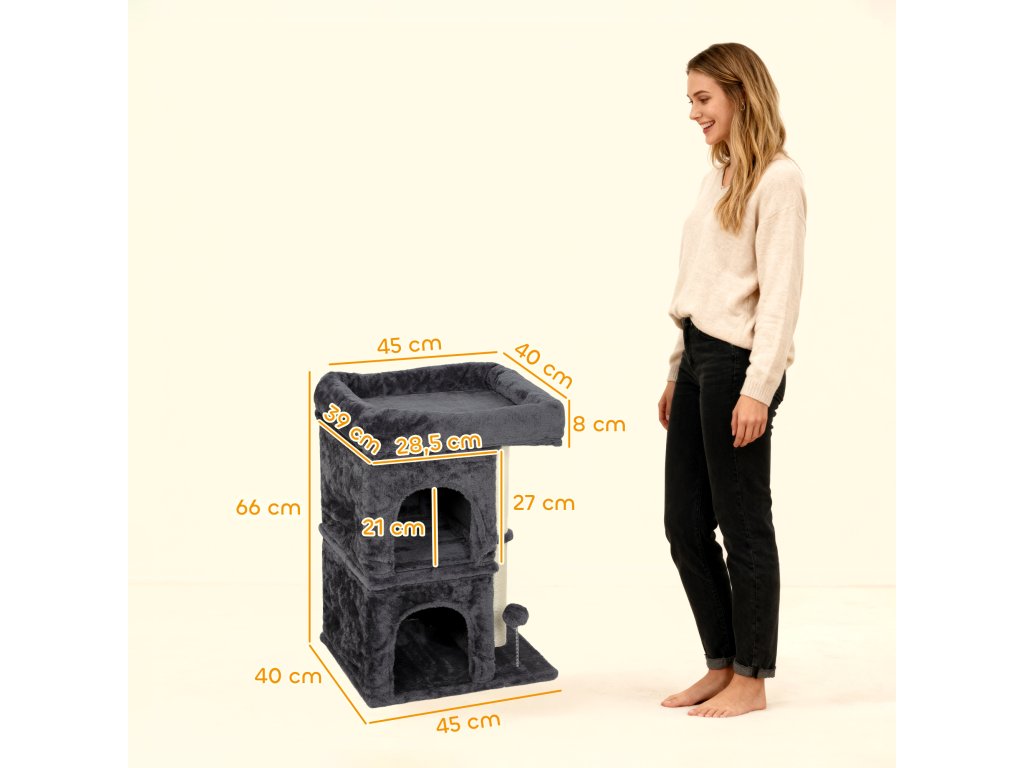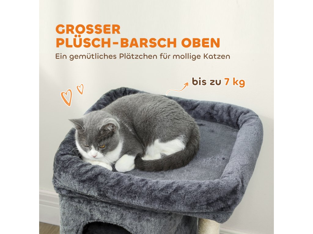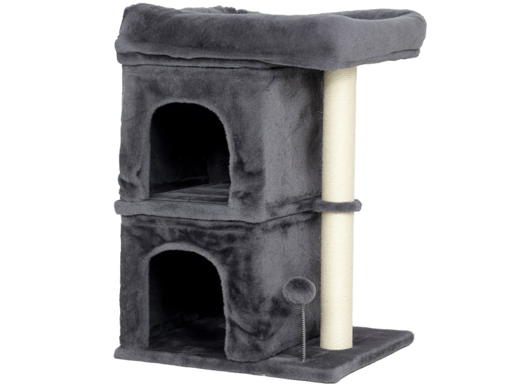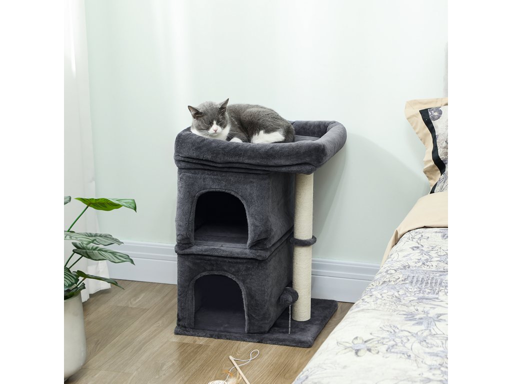 Škrabadlo pro kočky PawHut, věž pro kočky, 2 jeskyně, plošina, sisalové sloupky, kompaktní, tmavě šedá