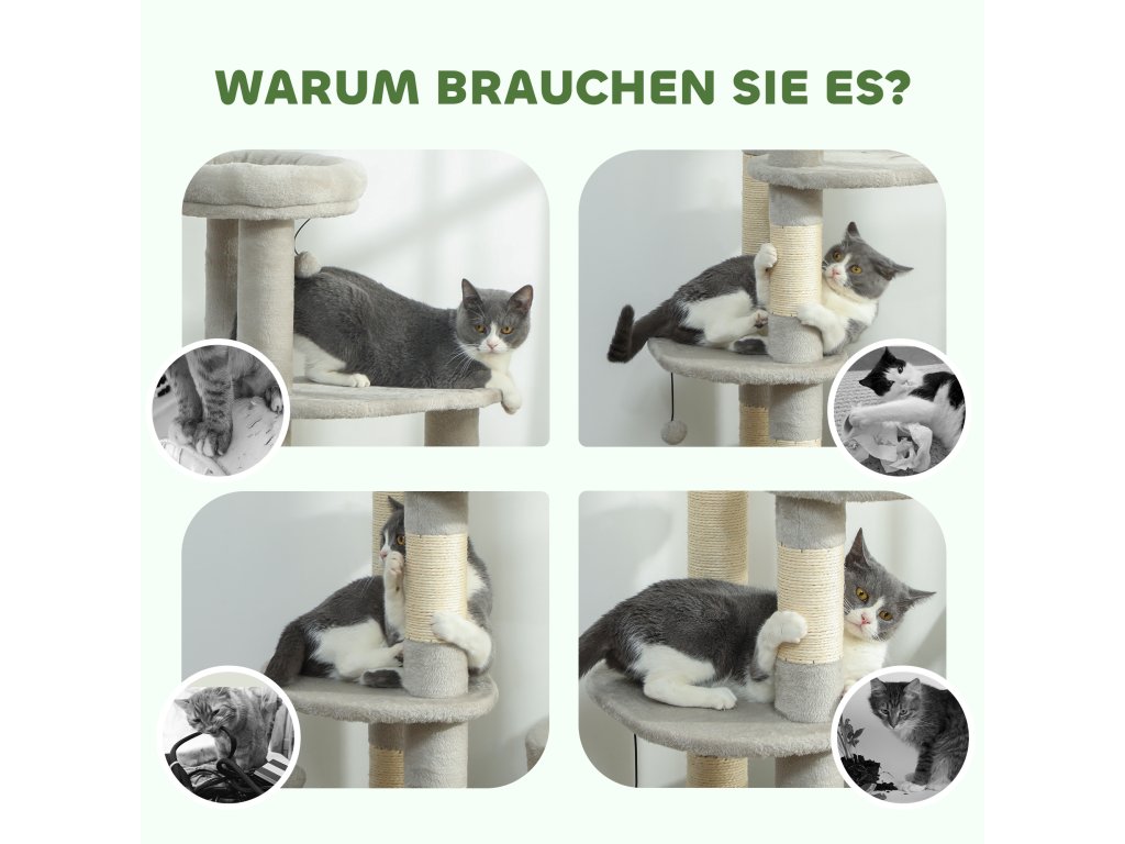 Chraňte svůj nábytek: Díky integrovaným škrabadlům umožňuje tento kočičí strom vašim domácím kočkám bezpečně a hravě si brousit drápy, čímž je udržuje zdravé a zároveň chrání váš nábytek.