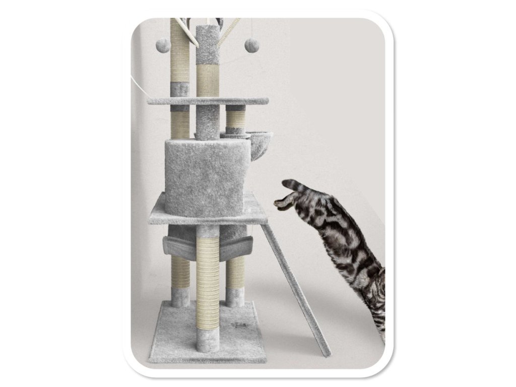Škrabadlo pro kočky EMMA Light Grey, s více úrovněmi a hračkami – Luxusní zábava a relaxace pro vašeho mazlíčka