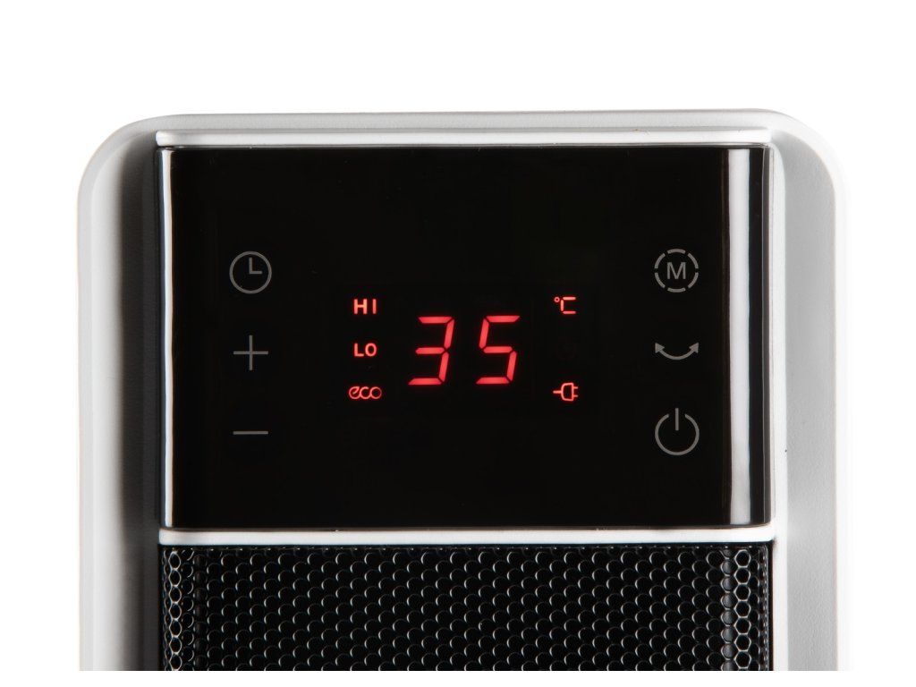 Vysoký komfort ovládání zajišťuje dotykový panel s přehledným LED displejem a dálkový ovladač pro ovládání všech funkcí topení. Jednoduše nastavíte teplotu v rozmezí 5 až 35 °C a díky funkci ECO ušetříte energii.