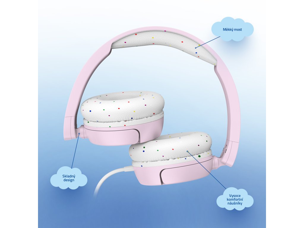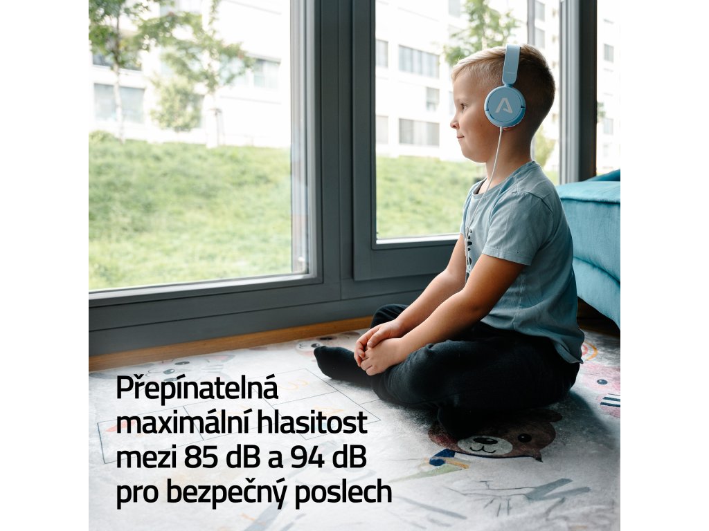 Maximální hlasitost sluchátek je omezena na 85/94 dB, aby byl sluch dětí v bezpečí a nedošlo k jeho poškození.