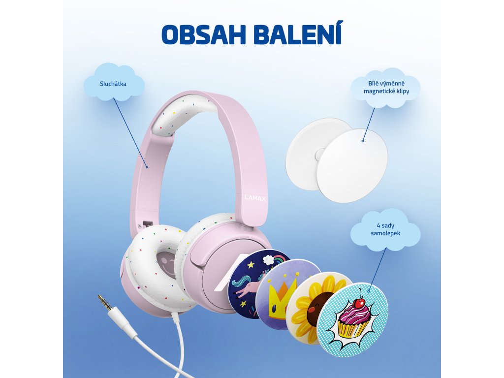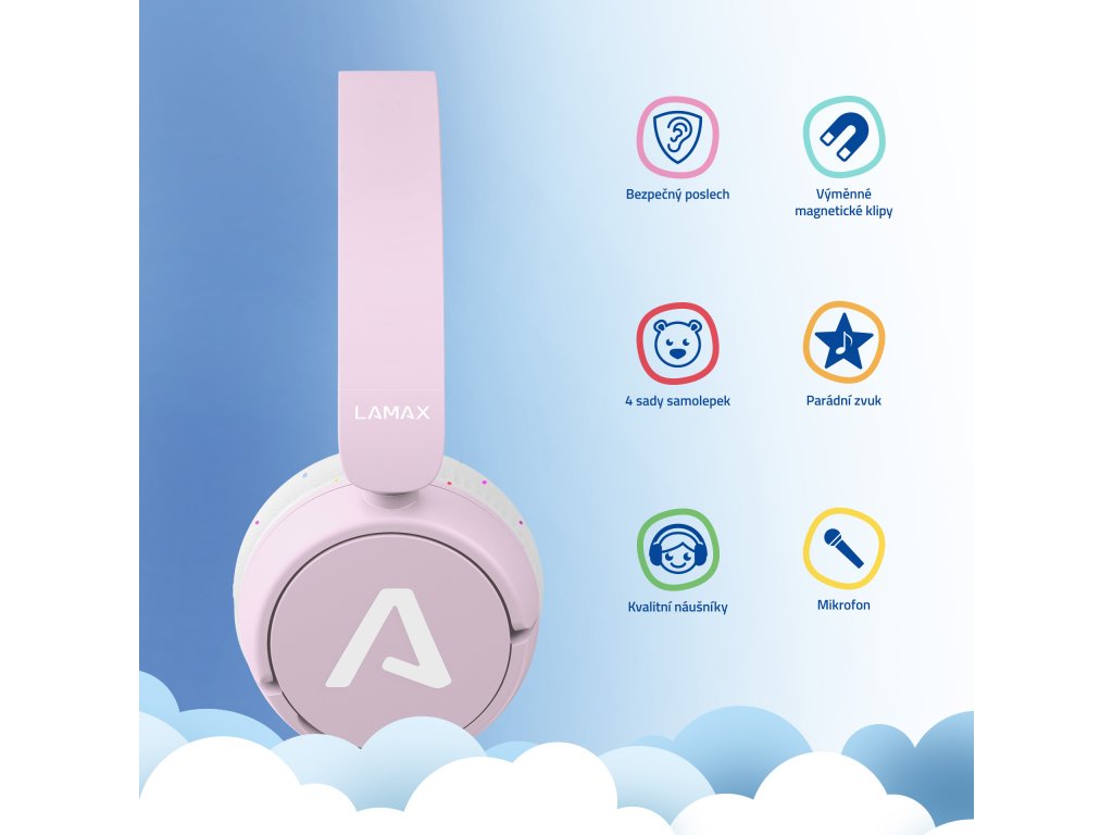 Bezpečný poslech světa pohádekDobře víš, jak je super občas se trochu odpojit od světa, tak dopřej totéž i dětem. Taky naši nejmenší utíkají do svého světa fantazie třeba při sledování pohádek nebo (nejen) výukových videí. Díky dětským náhlavním sluchátkům LAMAX SoundKid1 si tyhle kratochvíle mohou užívat doma nebo při cestování autem, aniž by okolí muselo poslouchat dokola stejný dětský hit. Zásadní je bezpečnost, proto jsou sluchátka omezena na hlasitost 85/94 dB, zvuk však mají parádní a fakt kvalitní LAMAX BeatBass©. Vysoký komfort při poslechu zajišťují měkké hypoalergenní náušníky z nezávadných materiálů, který jsou doplněný výměnnými magnetickými clipy povzbuzujícími dětskou kreativitu. Mají možnost si je polepit přiloženýma samolepkama nebo pokreslit. Samozřejmostí je i zabudovaný mikrofon, kdyby si třeba chtěly zavolat s babičkou.