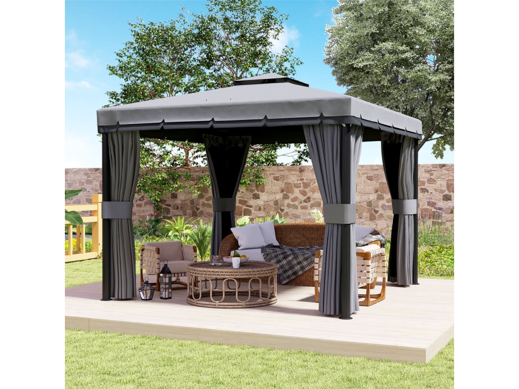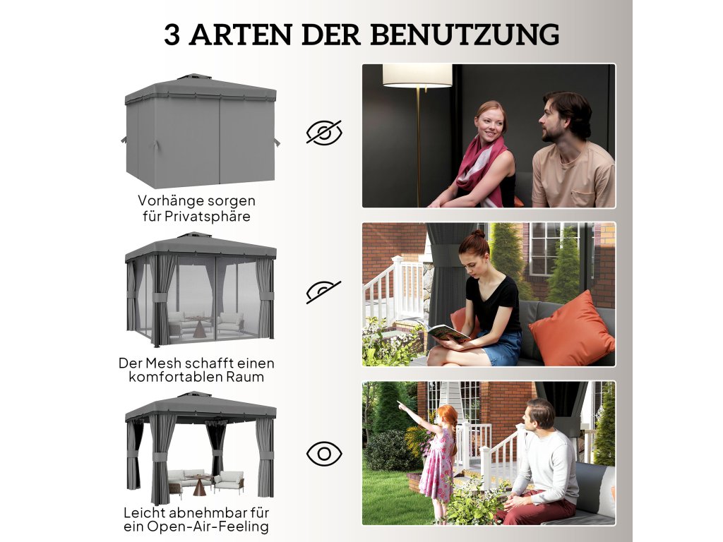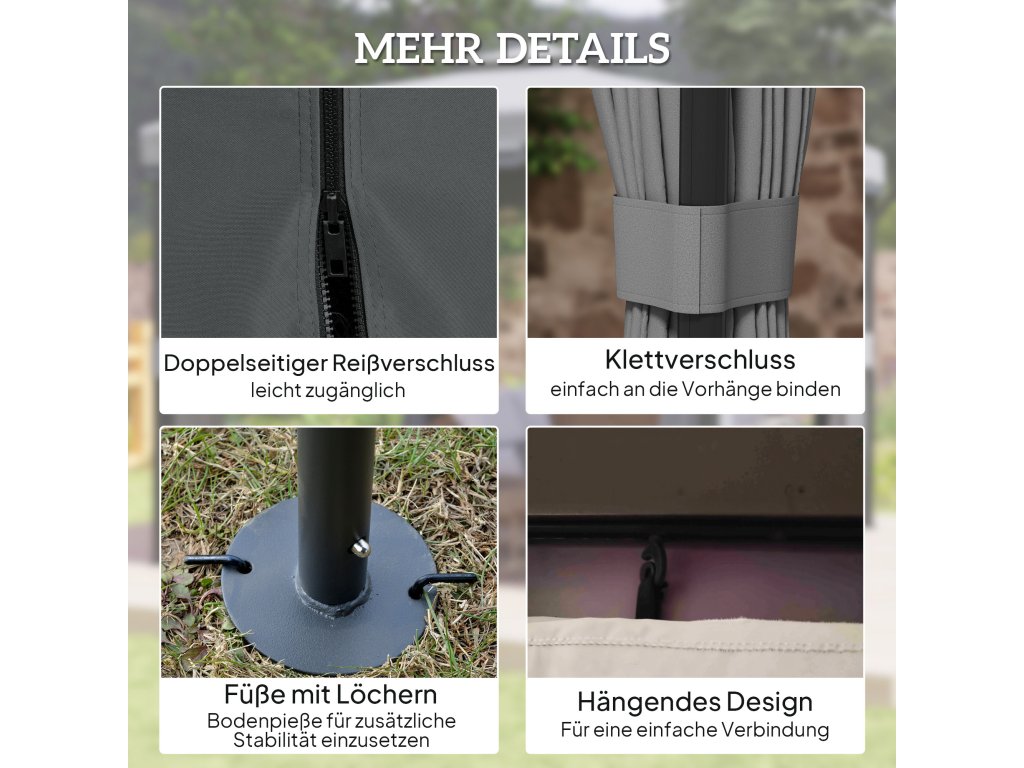 ✔ Neprůhledné závěsy altánu pro větší soukromí, připevněné suchým zipem