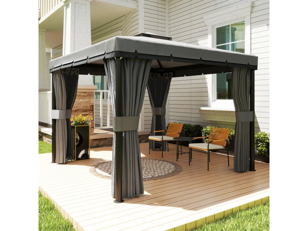 Sluneční pavilon cca 3x3m Voděodolný Stabilní Zimuvzdorný Zahradní pavilon s dvojitou střechou Moskytiéry na zip