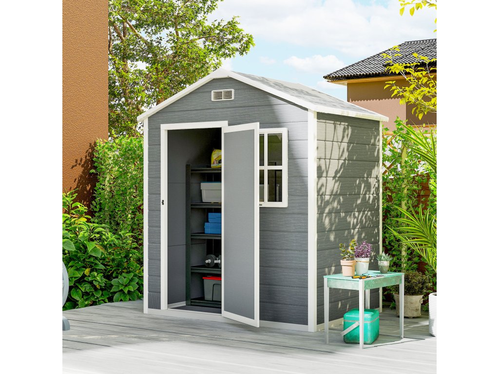 Objevte zahradní domek Outsunny – dokonalou kombinaci stylu a funkčnosti. Tento zahradní domek s rozměry 182 x 121 x 200 cm nabízí prostorný interiér o rozměrech 163 x 101 cm. 12 mm silný polypropylenový pryskyřičný obklad s povrchovou úpravou imitující dřevo je nejen vodotěsný a odolný vůči UV záření, ale také mimořádně elegantní. Průhledné okno pro přirozené světlo a dva větrací otvory zajišťují, že vaše zahradní nářadí zůstane suché a čerstvé.