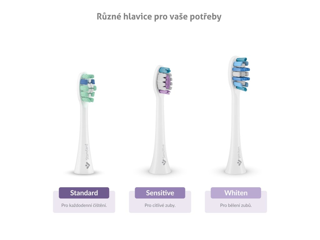 Balení obsahuje celkem 4 hlavice – 2x Standard a po jednom Sensitive a Whiten.