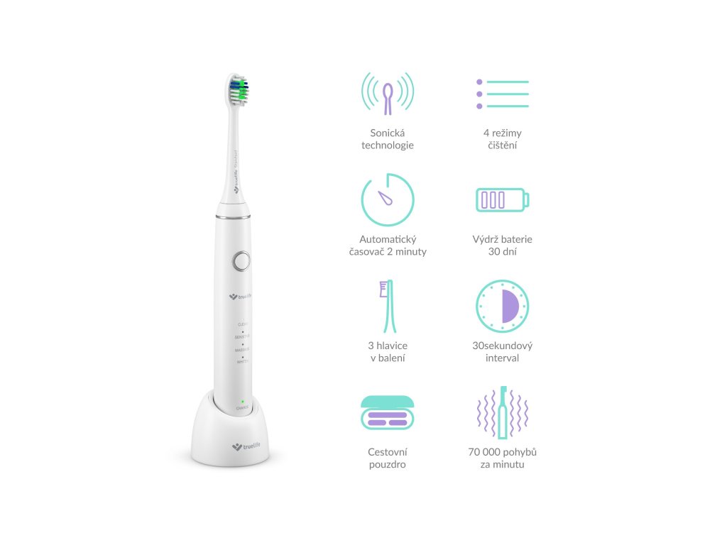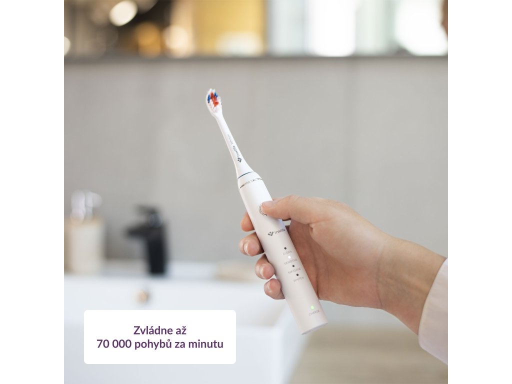 Hlavice kartáčku kmitá ve vysoké frekvenci 70 000 pohybů za minutu. Jemné vibrace nedají šanci zubnímu plaku, pigmentovým skvrnám ani bakteriím. Technologie SonicTrue® je oproti rotačním kartáčkům šetrnější k zubní sklovině. Kartáček zároveň víří pastu s vodou, vhání je do mezizubních prostor a tím je pomáhá čistit.