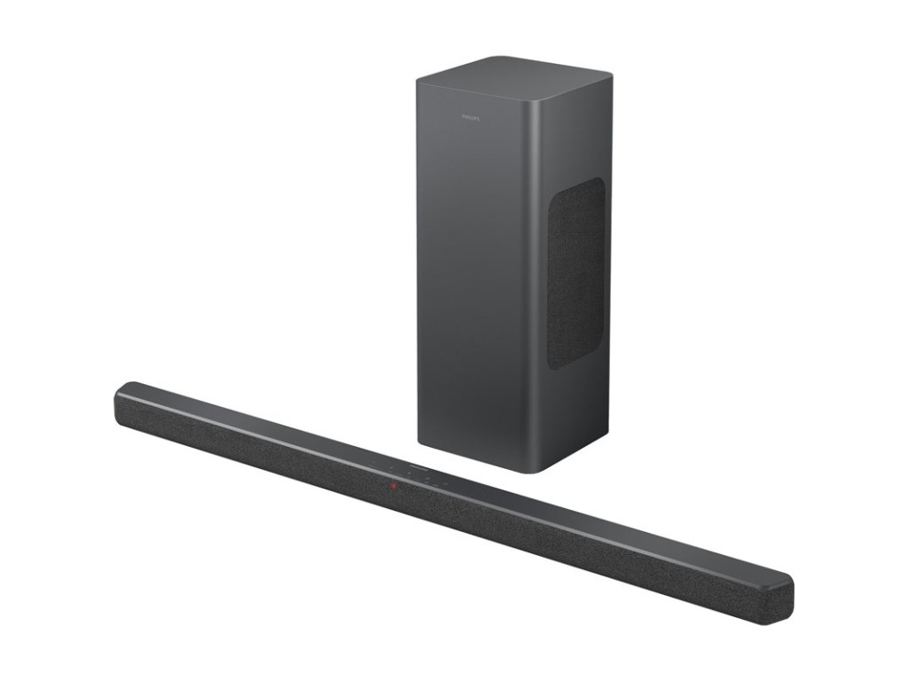 soundbar 2.1 kanálový zvuk • výkon 160 W • bezdrátový subwoofer • Dolby Atmos / DTS Virtual:X • Bluetooth • vstup AUX • digitální optické připojení • HDMI eARC • USB • app. Philips Home Entertainment • technologie Bluetooth LE Audio