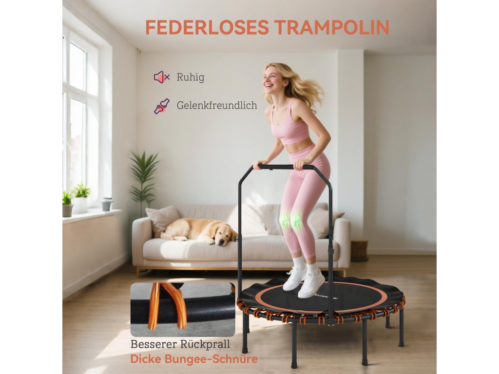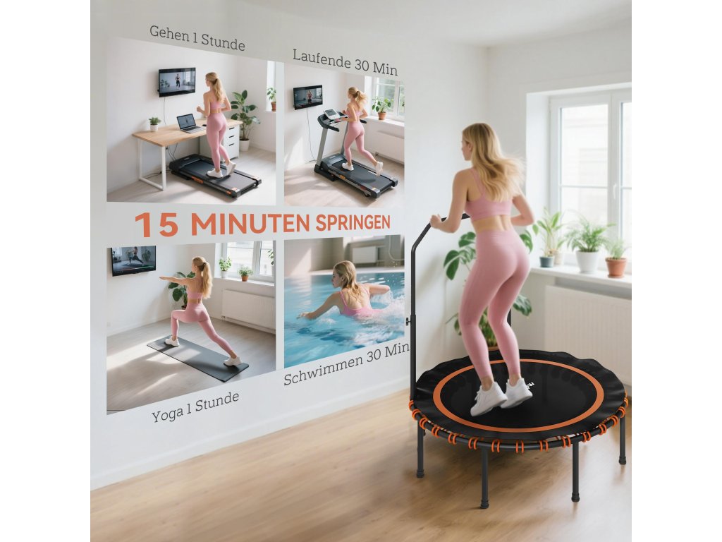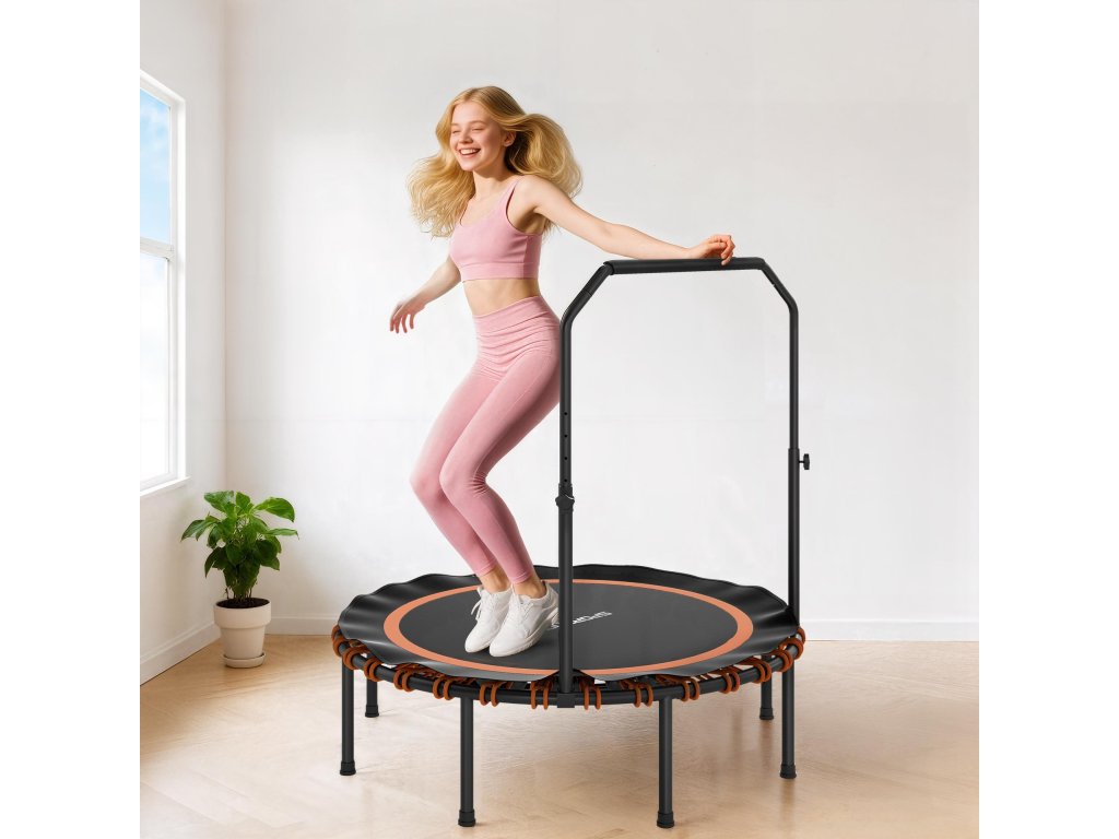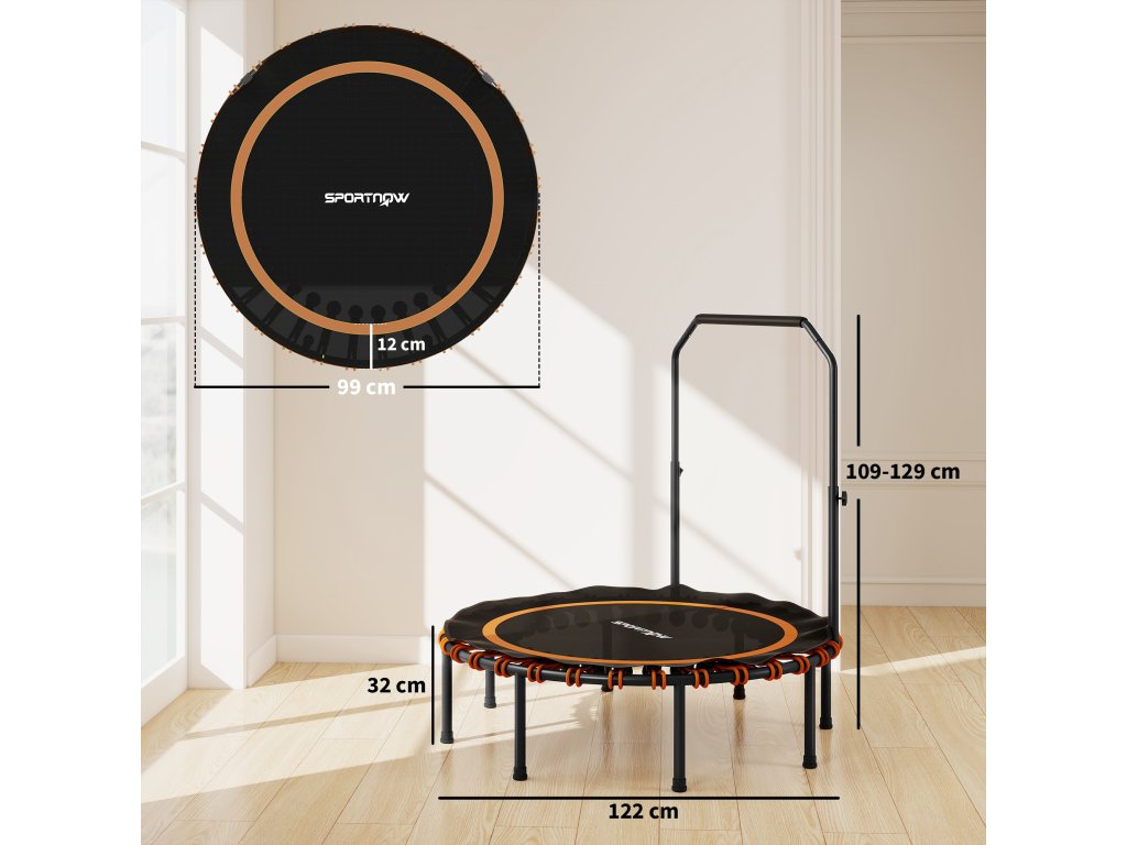 Hledáte bezpečné a pohodlné cvičení bez zahlcování domova? Mini trampolína SPORTNOW je řešením. 5-směrné nastavitelné madlo malé trampolíny zajišťuje stabilitu a buduje sebevědomí jak pro začátečníky, tak pro starší dospělé. Užijte si cvičení s nízkým dopadem díky 32 odolným bungee lanům. Tato skládací fitness trampolína snadno promění jakýkoli prostor ve vaši osobní posilovnu.